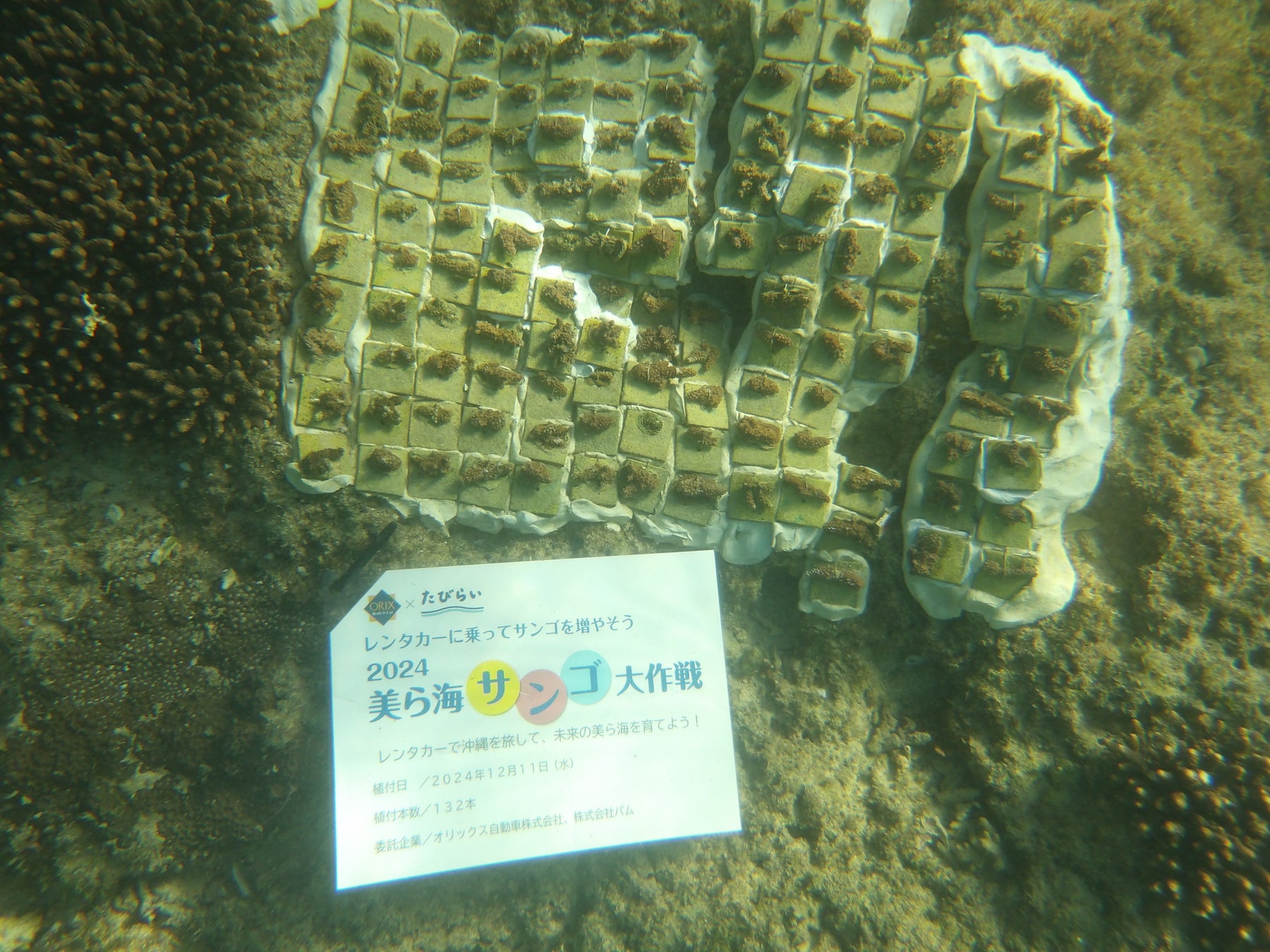 株式会社パム(本社:沖縄県那覇市、社長:長嶺 由成)およびオリックス自動車株式会社(本社:東京都港区、社長:内藤 進)は、2024年4月1日(月)~9月30日(月)の期間、オリックスレンタカーのご利用料金の一部をサンゴ保全活動へ拠出する「美ら海サンゴ大作戦2024」キャンペーン※を実施し、このたび、拠出金の活用により養殖サンゴ132本の植え付けが完了しましたのでご報告します。