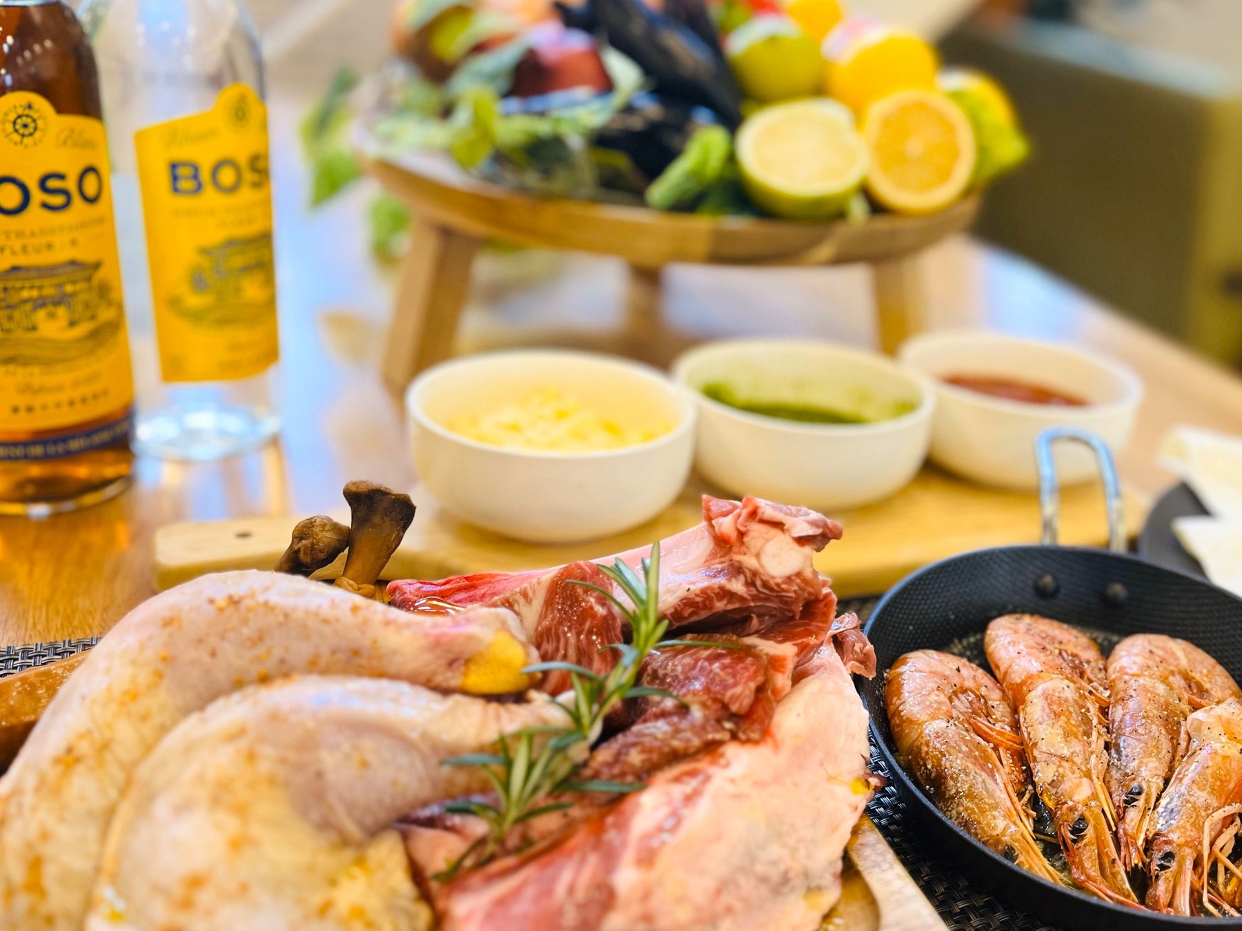 南房総生まれのラム酒「BOSO Rhum」を主役にしたカリブ海風のワイルドなBBQプラン。ウェルカムドリンクとして「BOSO Rhum Blanc」をご提供し、お客様のお好みに合わせその場でシェフが飲み方をご提案しお作りします。「BOSO Rhum」の誕生秘話や作り方についてもシェフが詳しく説明致しますので、トルティーヤをおつまみに、ラム酒の奥深い味わいをお楽しみください。BBQはスパイシーな骨付きジャークチキンや、新鮮な魚介を炭火で豪快に焼き上げます。まるでカリブ海のリゾートにいるかのような、夏にぴったりの特別なBBQ体験を!
