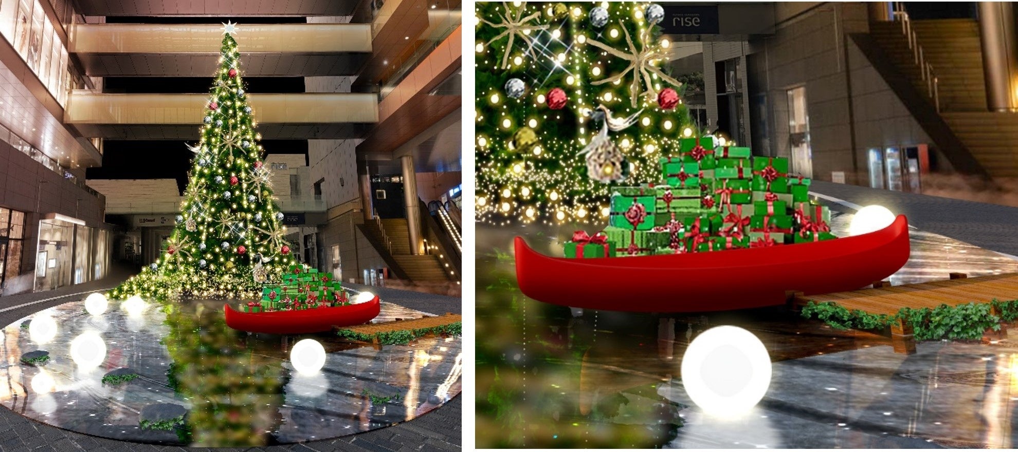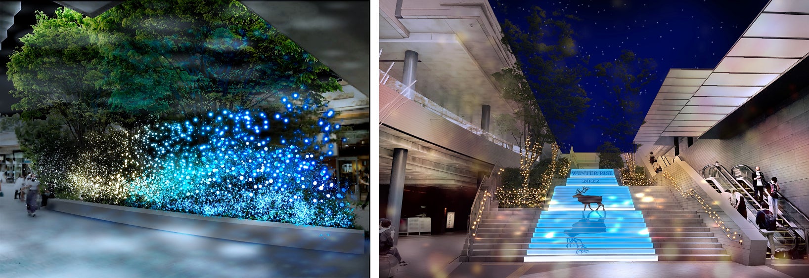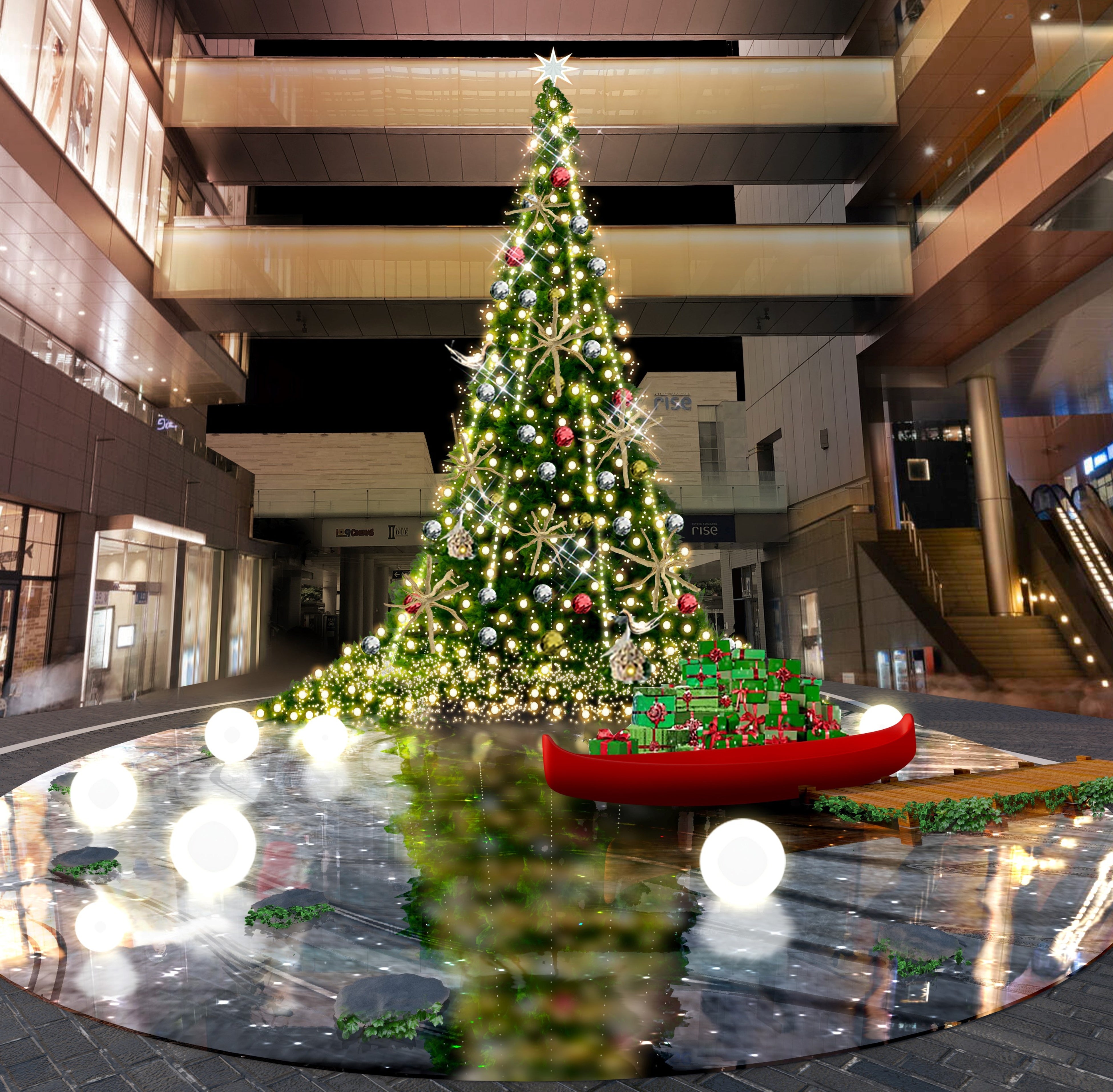 二子玉川ライズ全体を流れる“光の川”を表現したイルミネーション演出や揺らめく光が幻想的な空間を創り出す「鏡映しのクリスマスツリー」が登場!