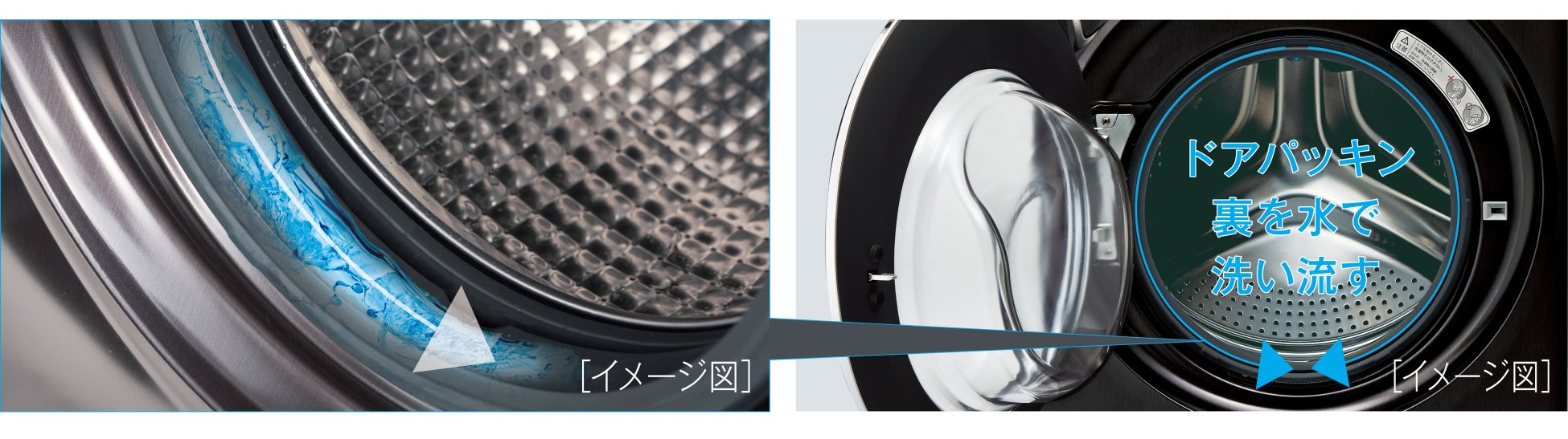 - 毎日のお手入れの手間を減らす自動おそうじ機能(乾燥フィルター、洗濯槽、ドアパッキン)を充実化