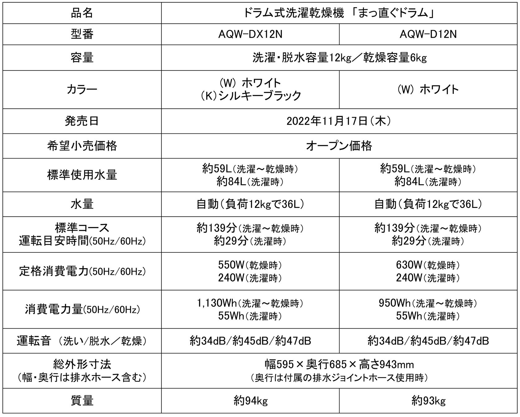 【ドラム式洗濯乾燥機 AQW-D12N】