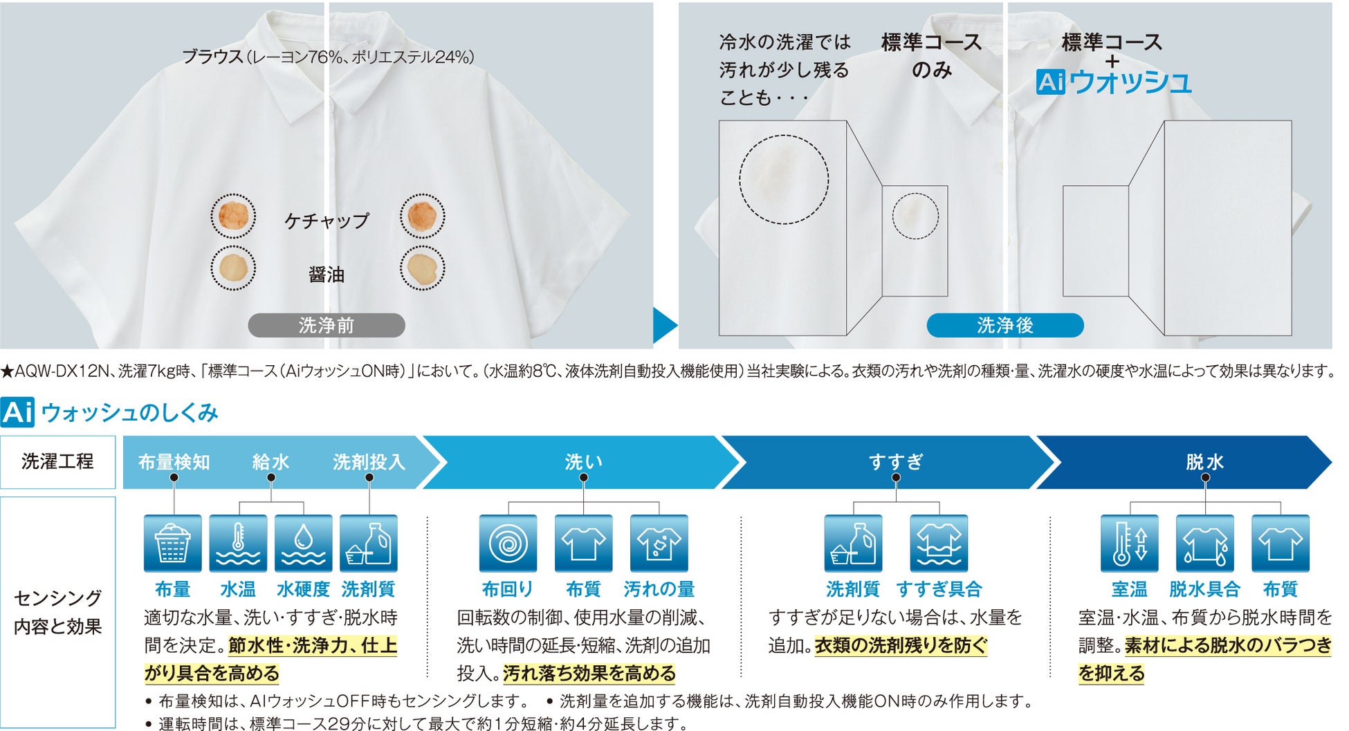 また、本商品の新しい機能として、洗濯の仕上がりを向上させる「Aiウォッシュ」を搭載しました。
