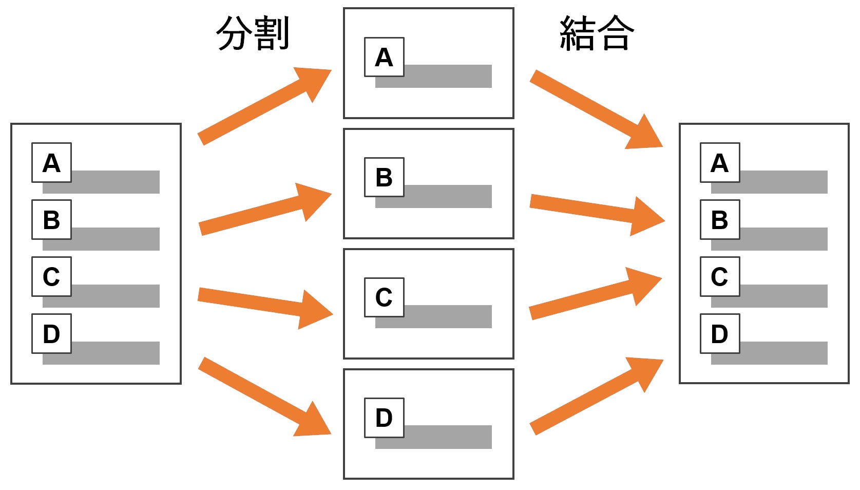 1つの楽譜をリハーサルマークや指定小節単位で簡単に分割できます。また、分割した楽譜はファイルを選択するだけで簡単に連結できます。複数のグループで1曲を作り上げる授業など、共同制作にお使いいただけます。