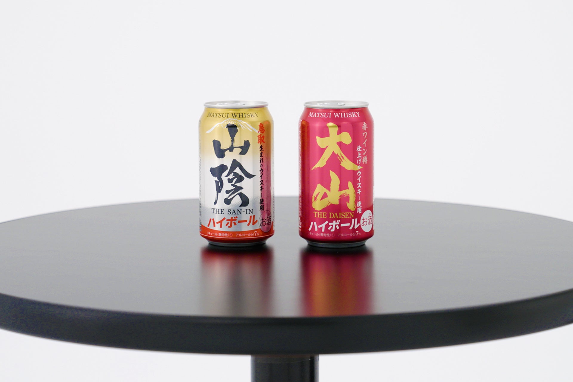 マツイウイスキーの人気商品、「ブレンデッドウイスキー 山陰」と「マツイウイスキー 大山」をそれぞれハイボール缶にして発売。