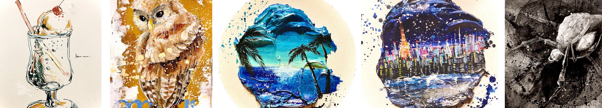 1歳から絵を描いている画家のはるです。YouTubeでは「はるアトリエ」として活動しています。絵の具を飛ばしたり、感情に任せて描いたりする作品が多いです。学生の頃、描き方やおすすめ画材などの紹介動画が少なく、何を描けば良いのか、どんな画材が良いのか、私自身悩んでいた過去がありました。よって社会人になった今、私にできることは芸術学科や画塾で学んできた事全てを発信する事だと思い、ネットやライブペイント等で活動しております。