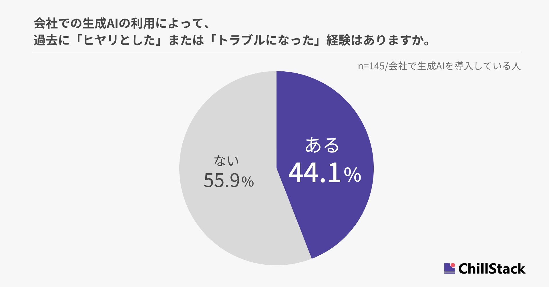 ・44.1%が会社での生成AI利用で「ヒヤリとした」または「トラブルになった」経験あり