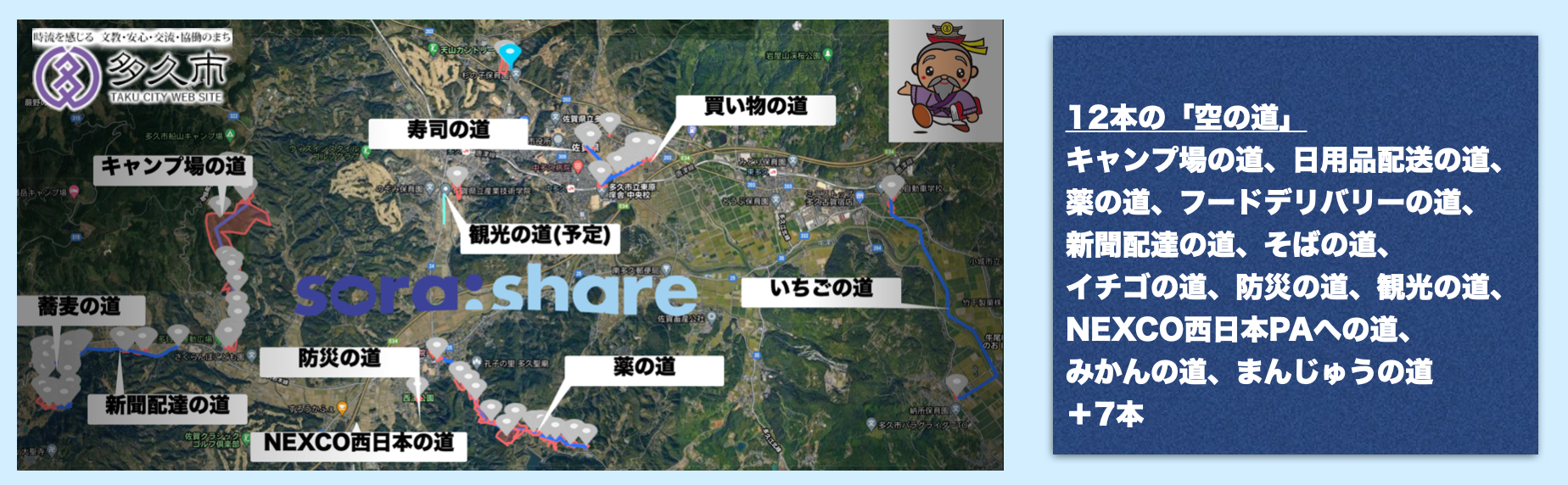 ドローン空路デザインのスタンダード「ソラシェア・モデル」を、佐賀県多久市をベースにご紹介します。