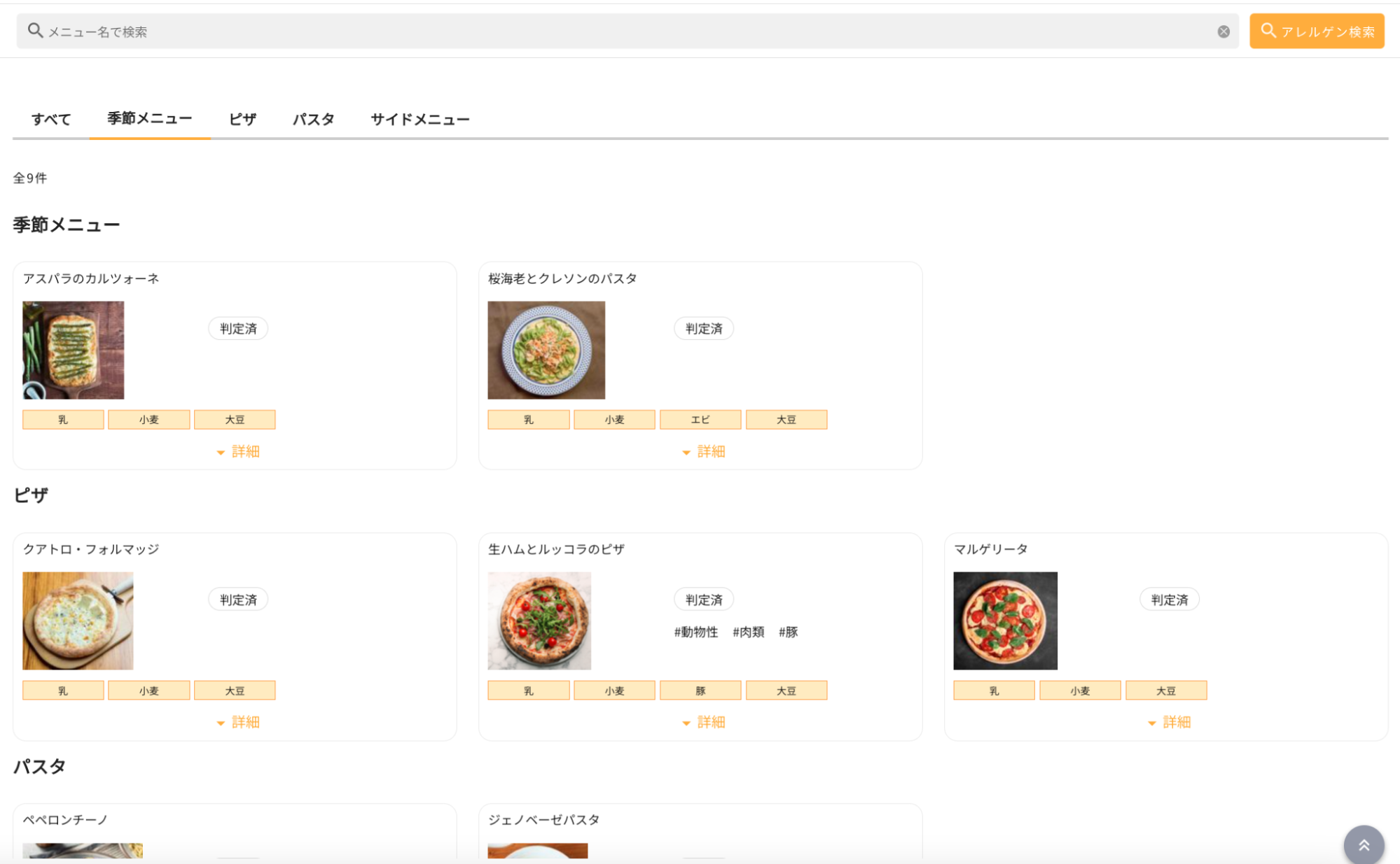 アレルゲン公開ページでメニューのアレルギー情報をカテゴリ別に確認する