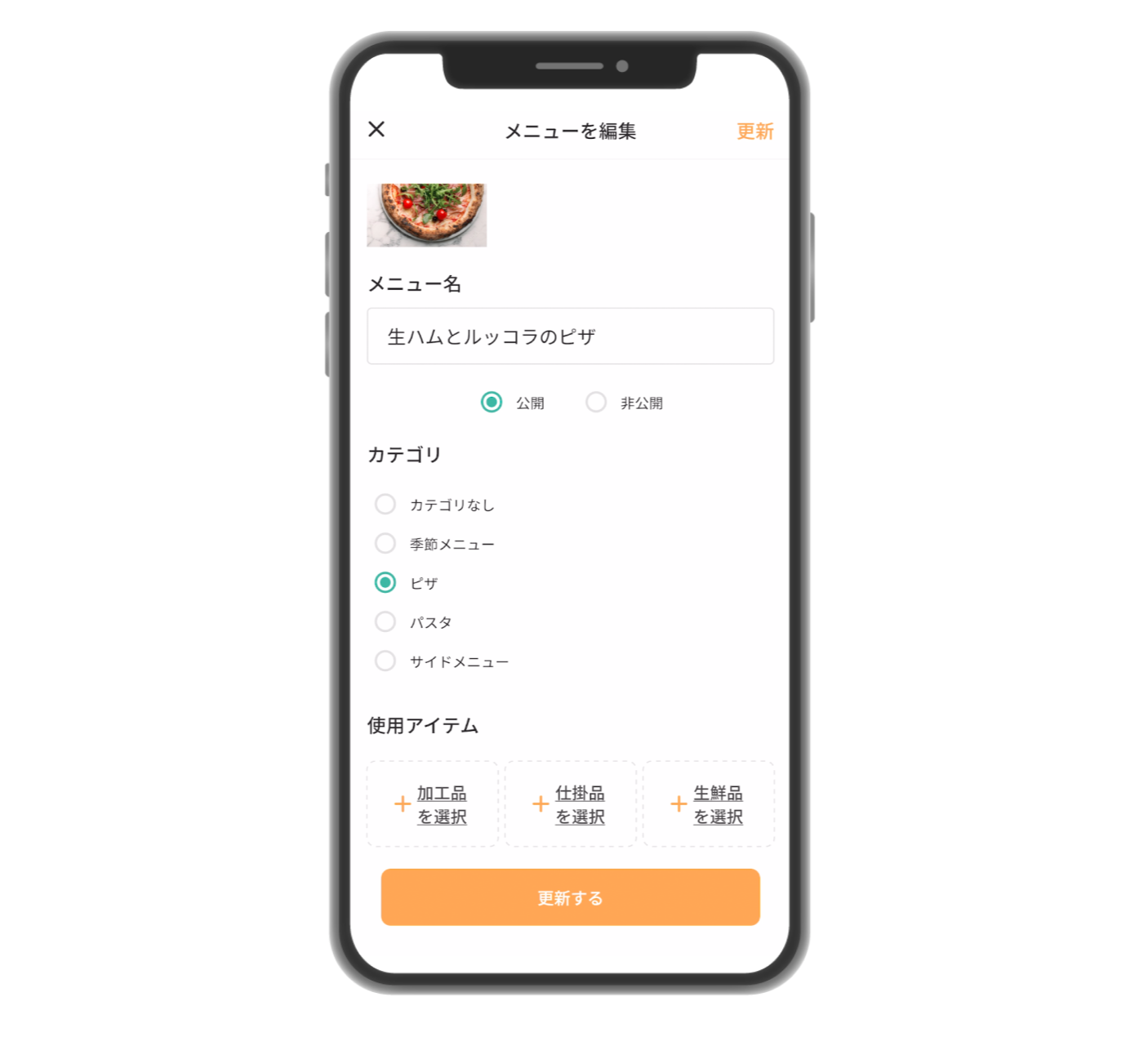アプリ上で新規カテゴリを作成し、各カテゴリにメニューを追加する