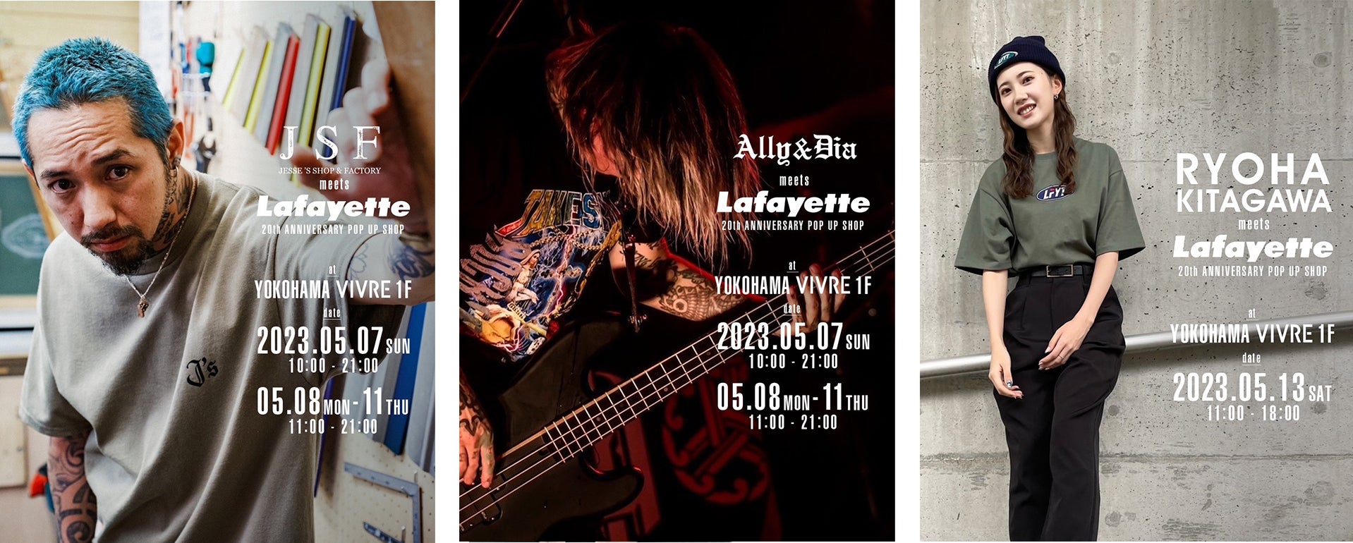 横浜ビブレ屋上で2023年4月26日にオープンする「BACK YARD -Brooklyn Park Yokohama-」は、横浜に根付くアート・音楽・食などのストリートカルチャーが楽しめるルーフトップパークです。この度オープンを記念して、Lafayetteとのコラボレーションが実現しました。今年20周年を迎える神奈川県を拠点にスタートしたLafayette。横浜のカルチャーを発信する新たなカルチャースポットとしてオープンする本施設のコンセプトやテーマに共感いただき、この度4つのコラボレーションを展開いたします。またGW中にはポップアップストアで有名ミュージシャン、人気Youtuber、インフルエンサーの来店イベントも開催します。ぜひお越しください。