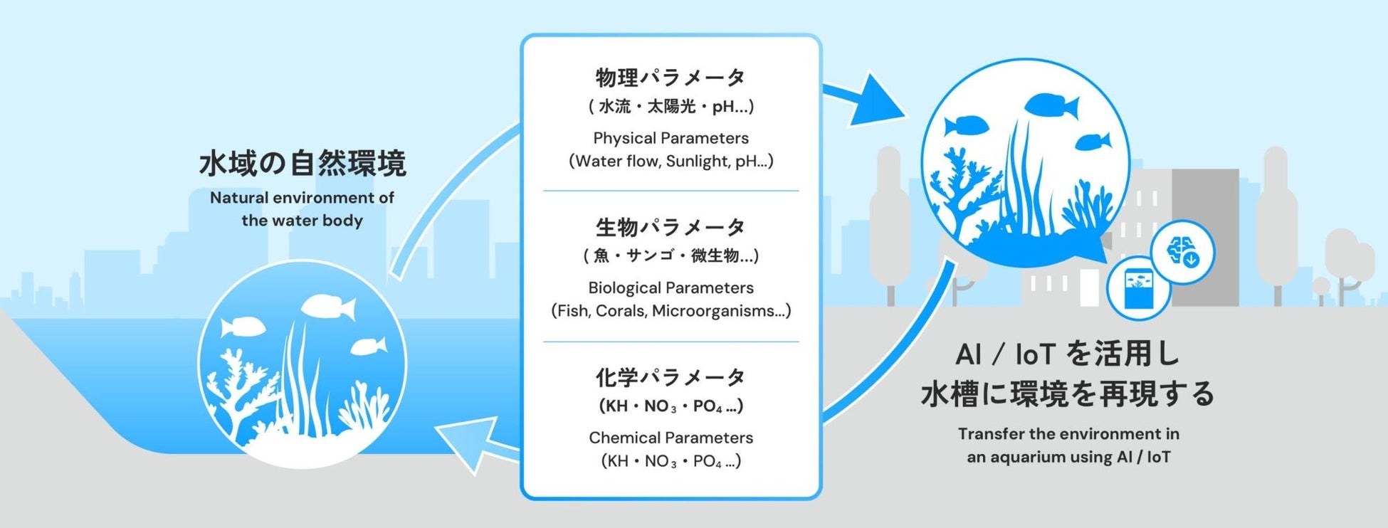 「人類の選択肢を増やし、人も自然も栄える世界をつくる」をミッションに掲げ、自然を愛し、好奇心に基づいて飼育研究を行う人々の力と、IoT・AI技術を組み合わせることで、任意の生態系を水槽内に再現する『環境移送技術®』の研究開発を推進しています。2022年2月には世界初となるサンゴの人工産卵実験に成功しました。