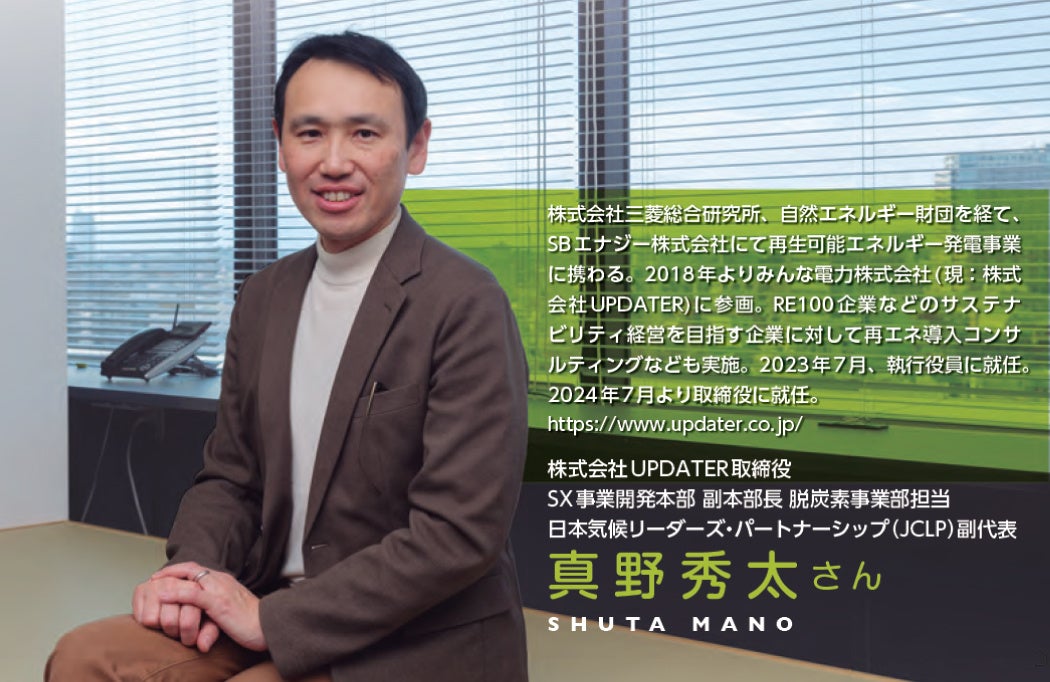 日本はエネルギー供給の約7割を依然として火力発電に依存している。その一方で気候変動の影響は年々顕著になり、私たちの日常生活にも及ぶようになってきた。「2035年までの10年間が気候変動対策の重要な時期」と警鐘を鳴らすのがUPDATER取締役の真野秀太さん。再生可能エネルギーの現在について話を聞いた。