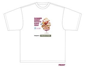 オフィシャルアパレルパートナーとして、「FREAK'S STORE」デザインによるオリジナルスタッフTシャツを制作。表には「夏のさつまいも博」キービジュアルをあしらい、裏には「さつまいも博」で人気だった“品種クリアファイル”のデザインをモチーフにした“サツマイモフリーク”が喜ぶデザインになっています!