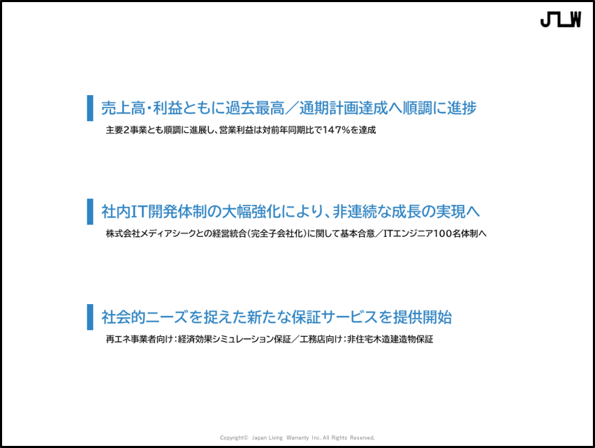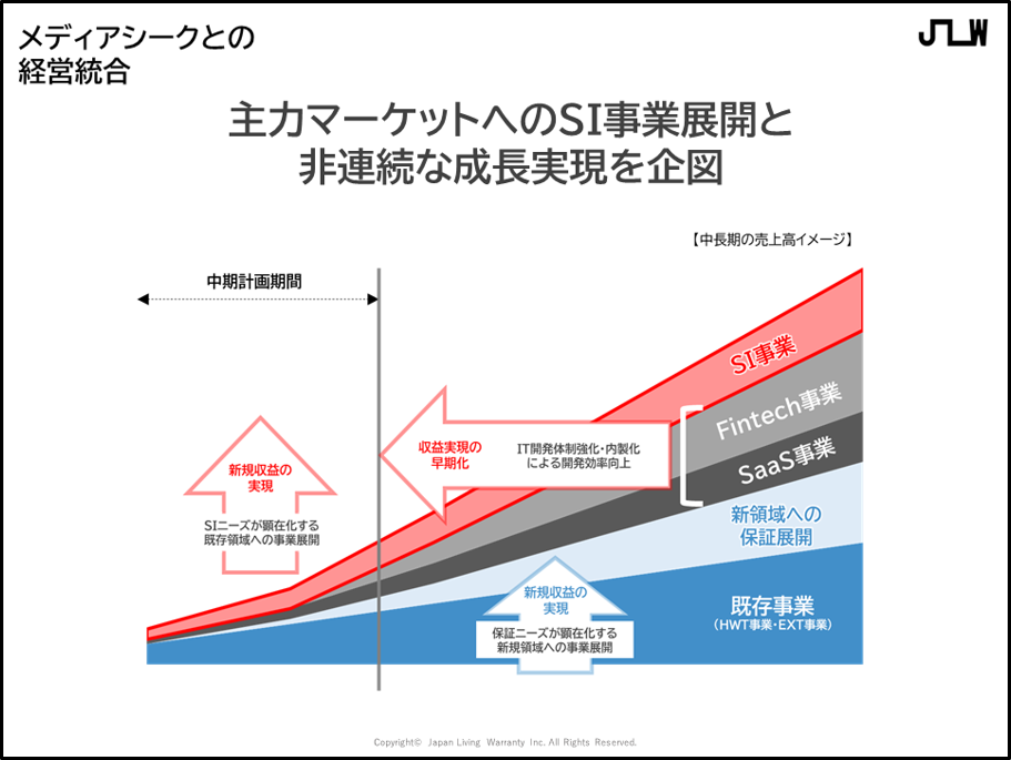また後述の通り、株式会社メディアシークとの経営統合に関して基本合意を締結しており、社内IT開発体制の大幅強化により、非連続な成長の実現を目指しております。