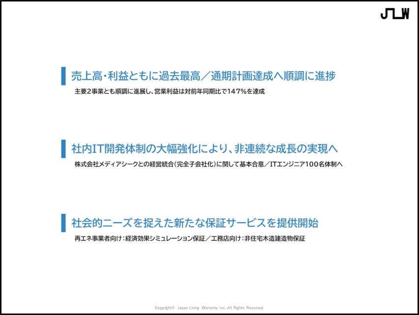 前期から継続的に取り組むSaaSなどの付加価値提供が奏功し、HWT事業における新規保証契約の獲得が順調に進展したほか、再生可能エネルギー関連機器へのサービス提供が拡大しており、EXT事業においても順調な成長が続いております。