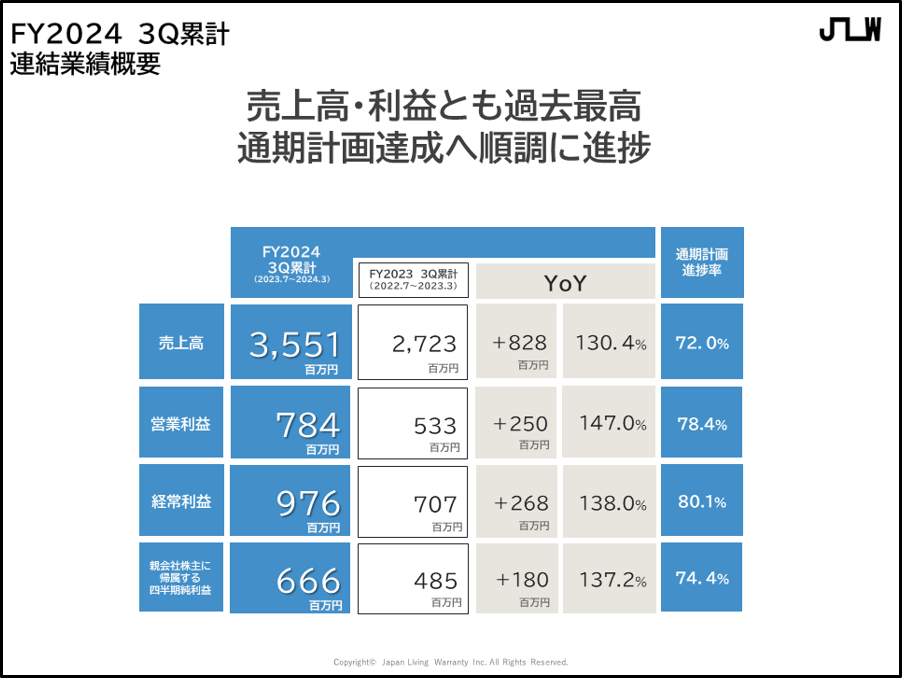 日本リビング保証、2024年6月期 第3四半期決算を発表