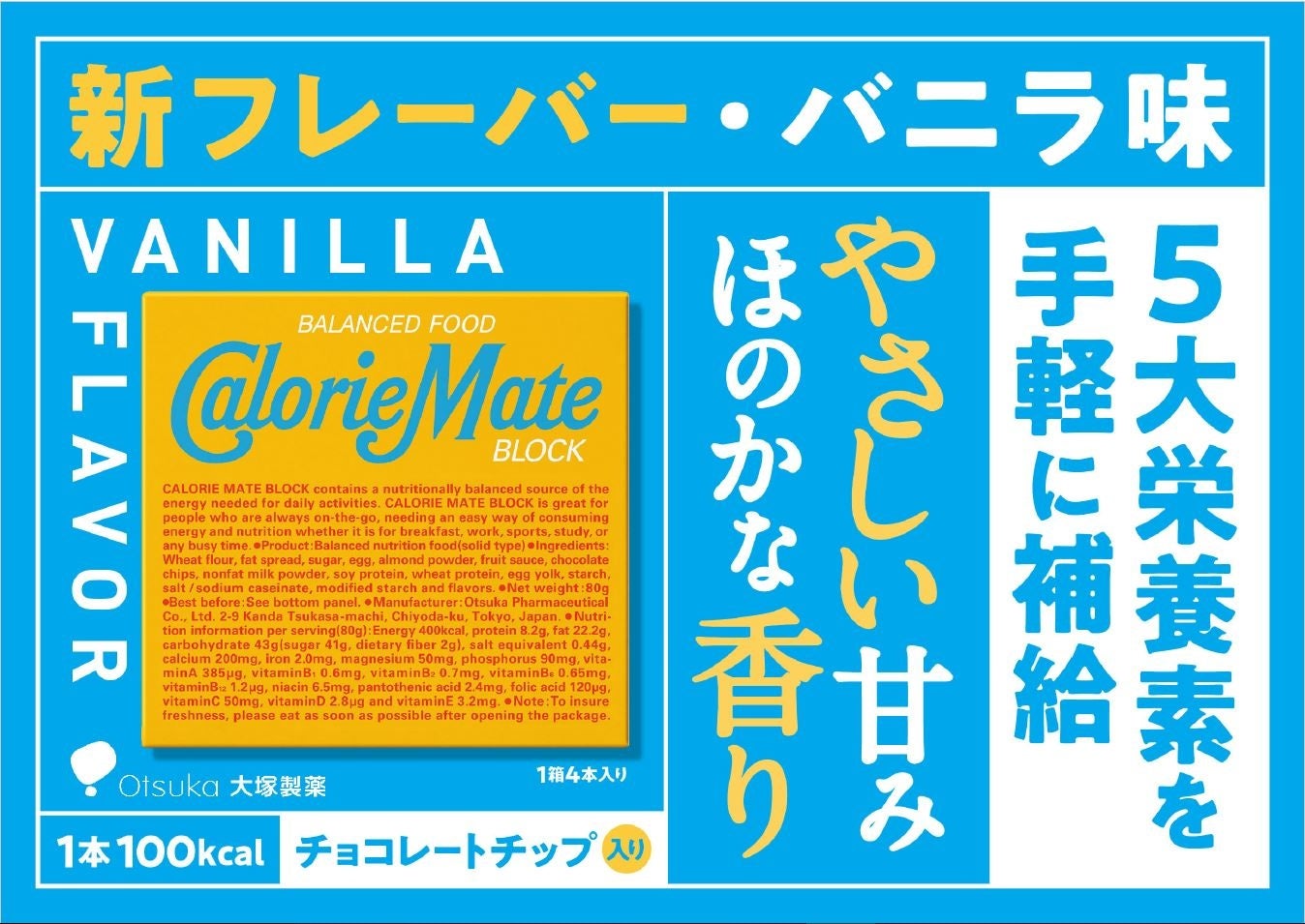 大塚製薬株式会社(本社:東京都、代表取締役社長:井上 眞、以下「大塚製薬」)は、バランス栄養食「カロリーメイト」の新たなアイテムとして、「カロリーメイト ブロック バニラ味」を3月22日より全国で発売します。