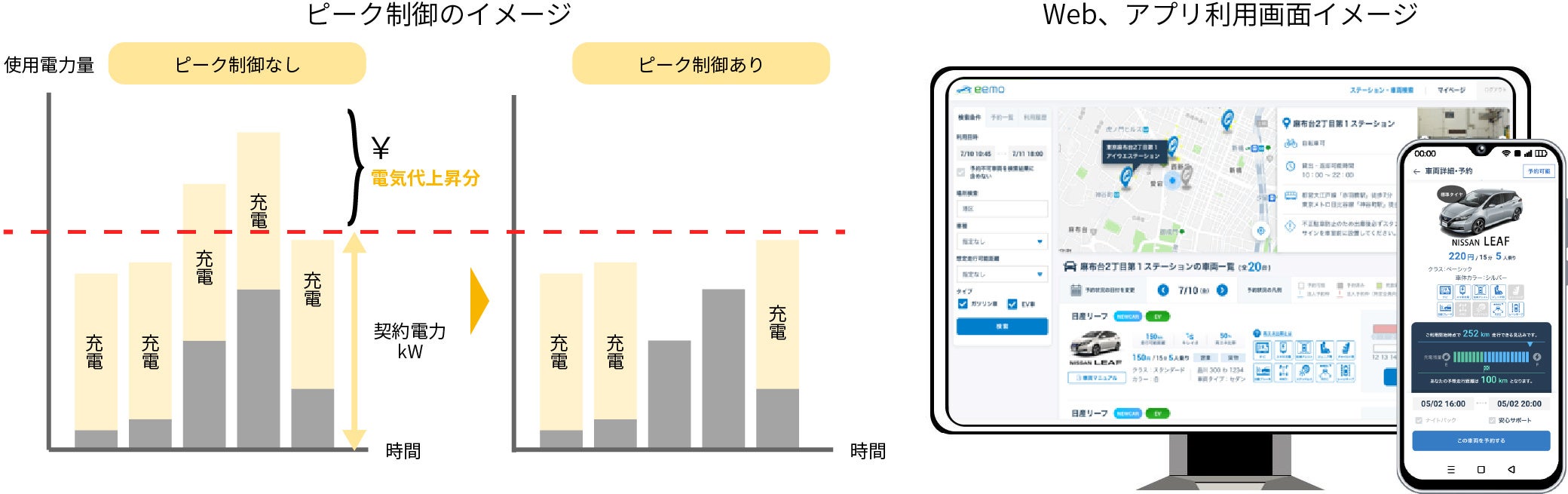 本サービスではEV導入を検討している法人・自治体を対象に、当社が開発したeMMP※1のEVエネルギーマネジメント機能や車両管理機能を活用し、EV導入の検討段階から導入後の効率運用、さらには実績データに基づく既存車両の削減やさらなるEVの追加導入まで幅広い支援サービスを提供します。