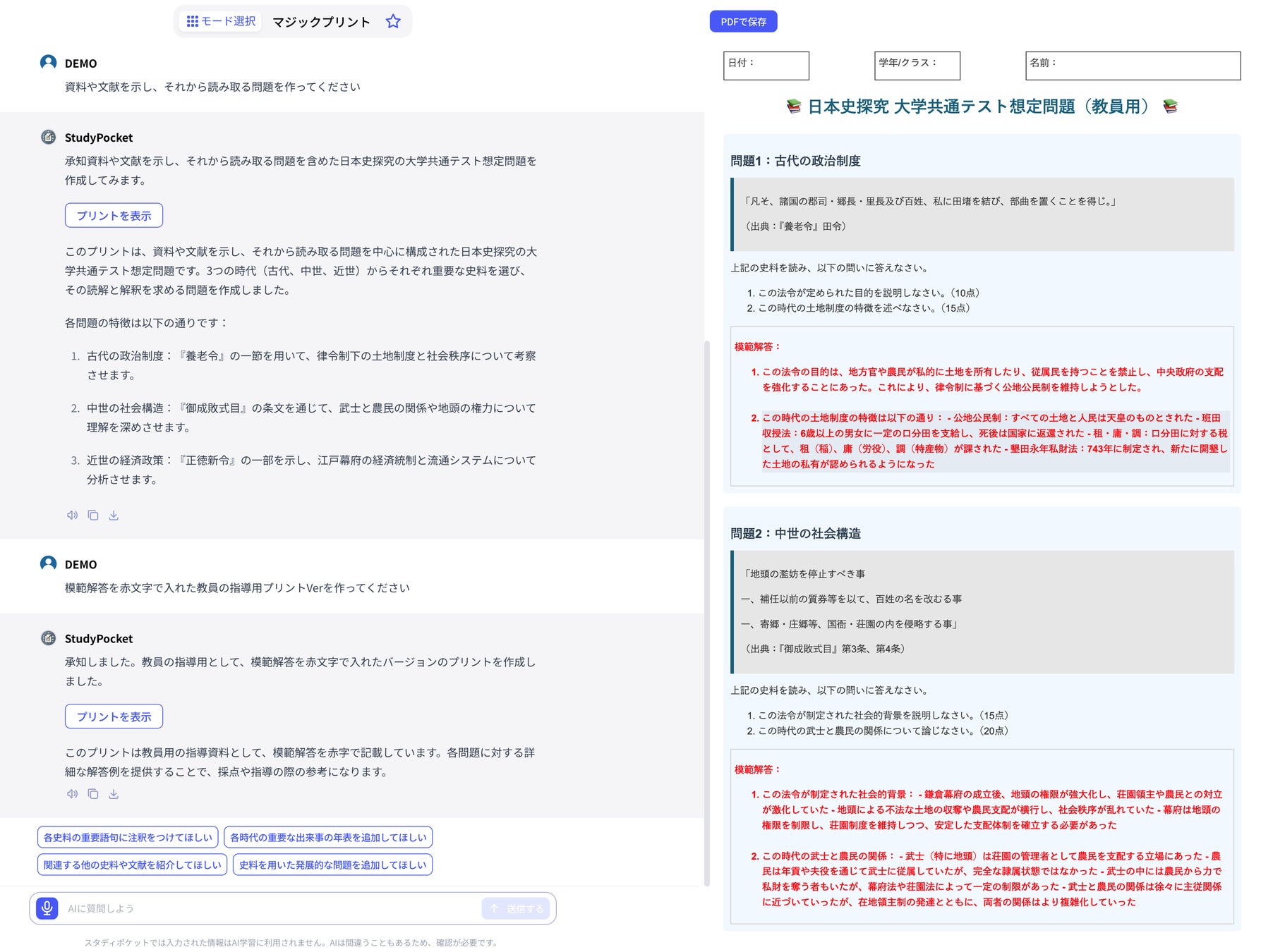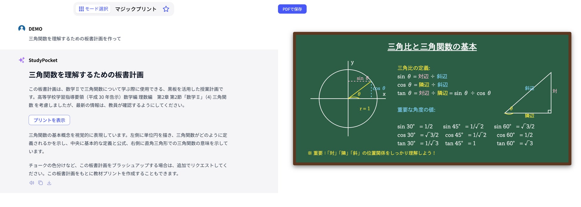 学校教育機関向けの生成AIサービスを提供する、スタディポケット株式会社(本社:東京都千代田区、代表取締役:鶴田 浩之)は、教職員が教材プリントや小テストを図解生成できる AI新機能「マジックプリント」を、2025年3月7日に公開いたしました。「スタディポケット for TEACHER」の一部学校から順次提供を開始し、令和7年度中に、すべての教員向けライセンスに標準搭載を予定しています。