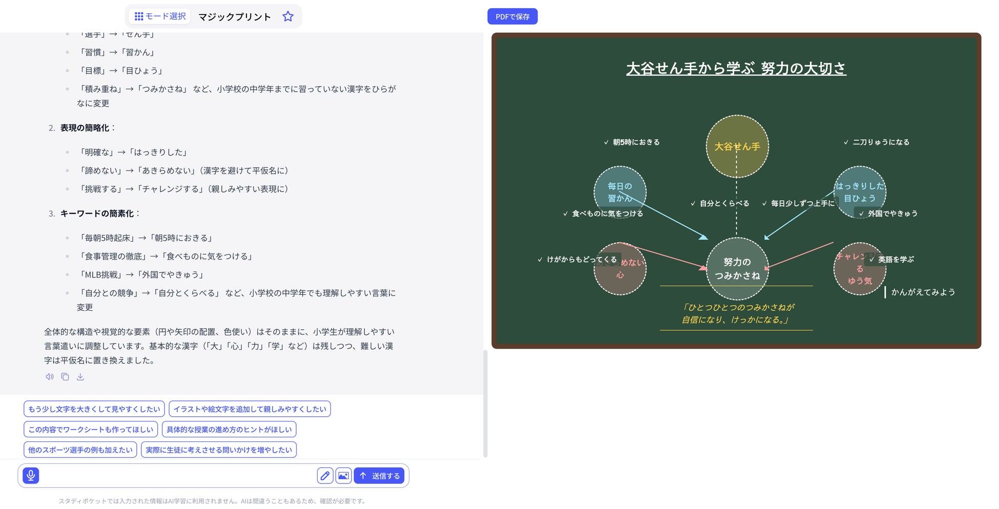 ぜひとも先生方の創意工夫によって、生成AIを用いたさまざまなプリント・図解作成のユースケースを発信してください。