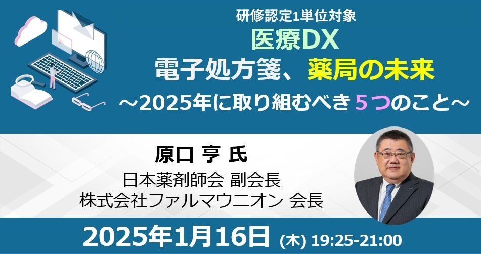 株式会社グッドサイクルシステム(本社:東京都港区、取締役社長:西村 真樹)は、薬局経営者・薬剤師向けにオンラインセミナーを開催します。今回は、日本薬剤師会 副会長 原口 亨 氏をお招きして「電子処方箋、薬局の未来~2025年に取り組むべき5つのこと~」についてご講演いただきます。