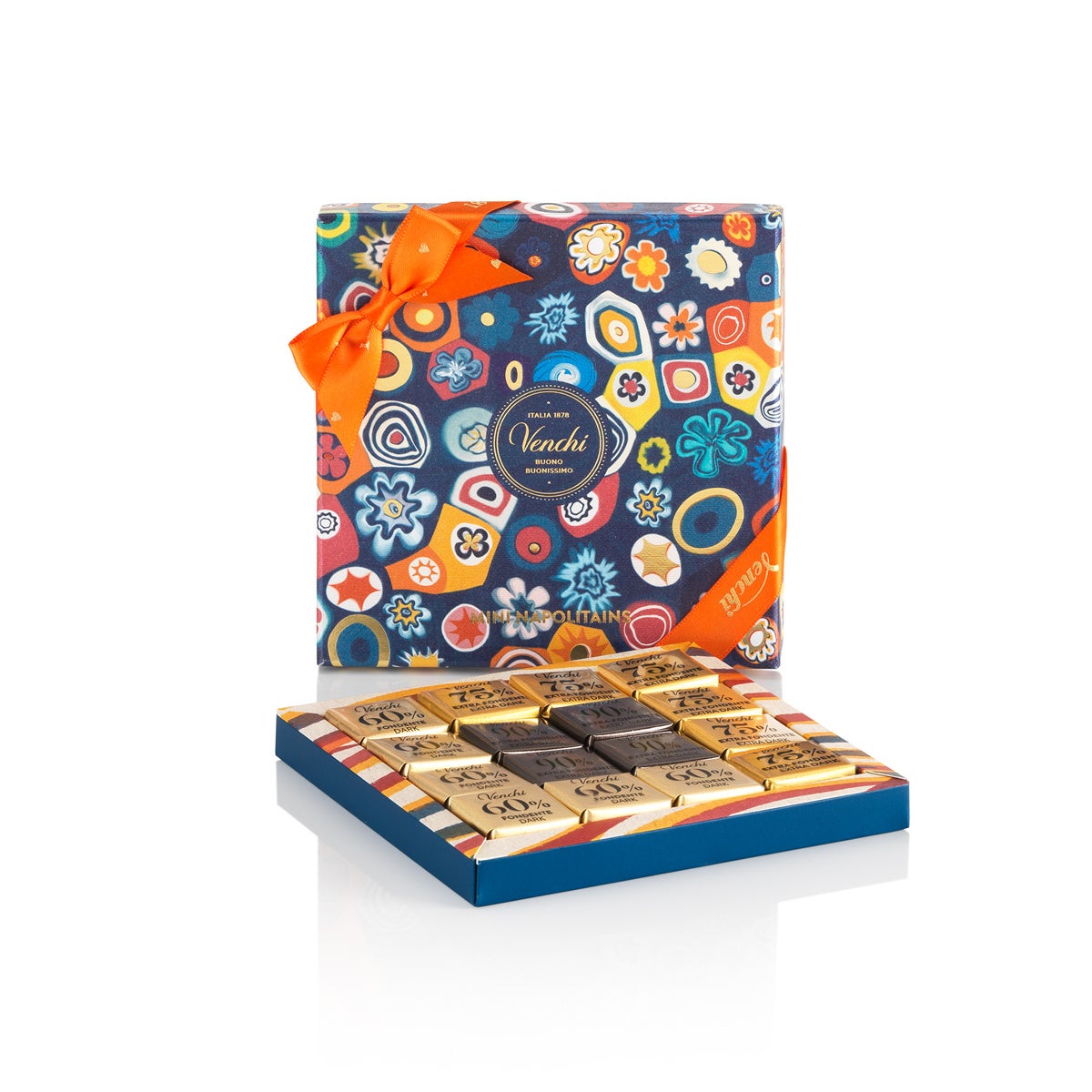 3種のハイカカオのミニブレンドを詰めたスモールギフト。小さなスクエア型のチョコレートはイタリアではナポリタンと呼ばれ、よくコーヒーに添えて提供されます。(3種16枚入り)