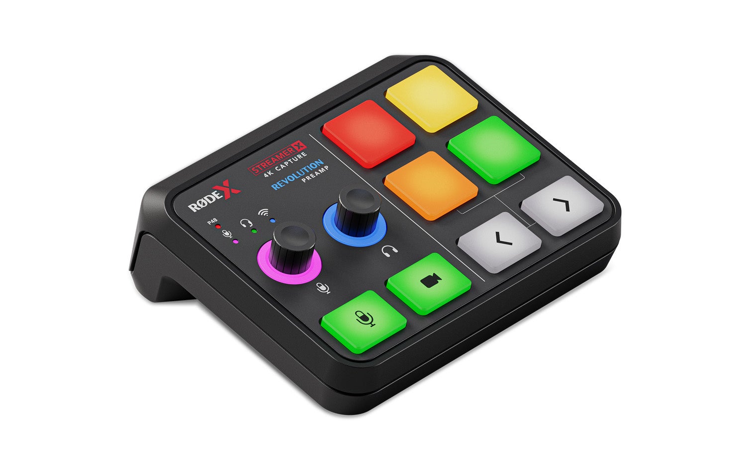 セットアップを邪魔しないコンパクトなサイズにも関わらず、4K対応キャプチャーボード、高音質オーディオインターフェース、片手で操作可能なコントロールボタンを搭載しています。本体右側には4つの「SMARTパッド」を備え、サンプラーや音声エフェクトの切り替えのほか、MIDIメッセージの送信もでき、抜群の操作性を提供します。