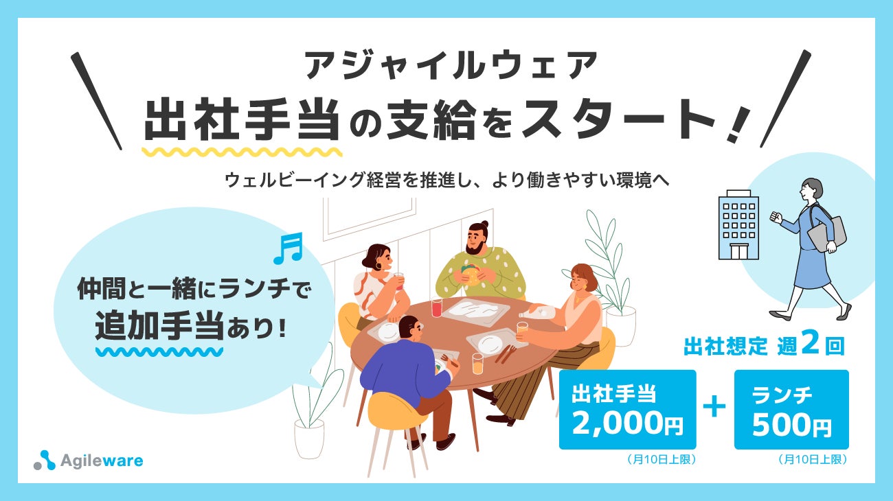 アジャイルウェア、出社手当の支給をスタート!仲間と一緒にランチで追加手当あり!