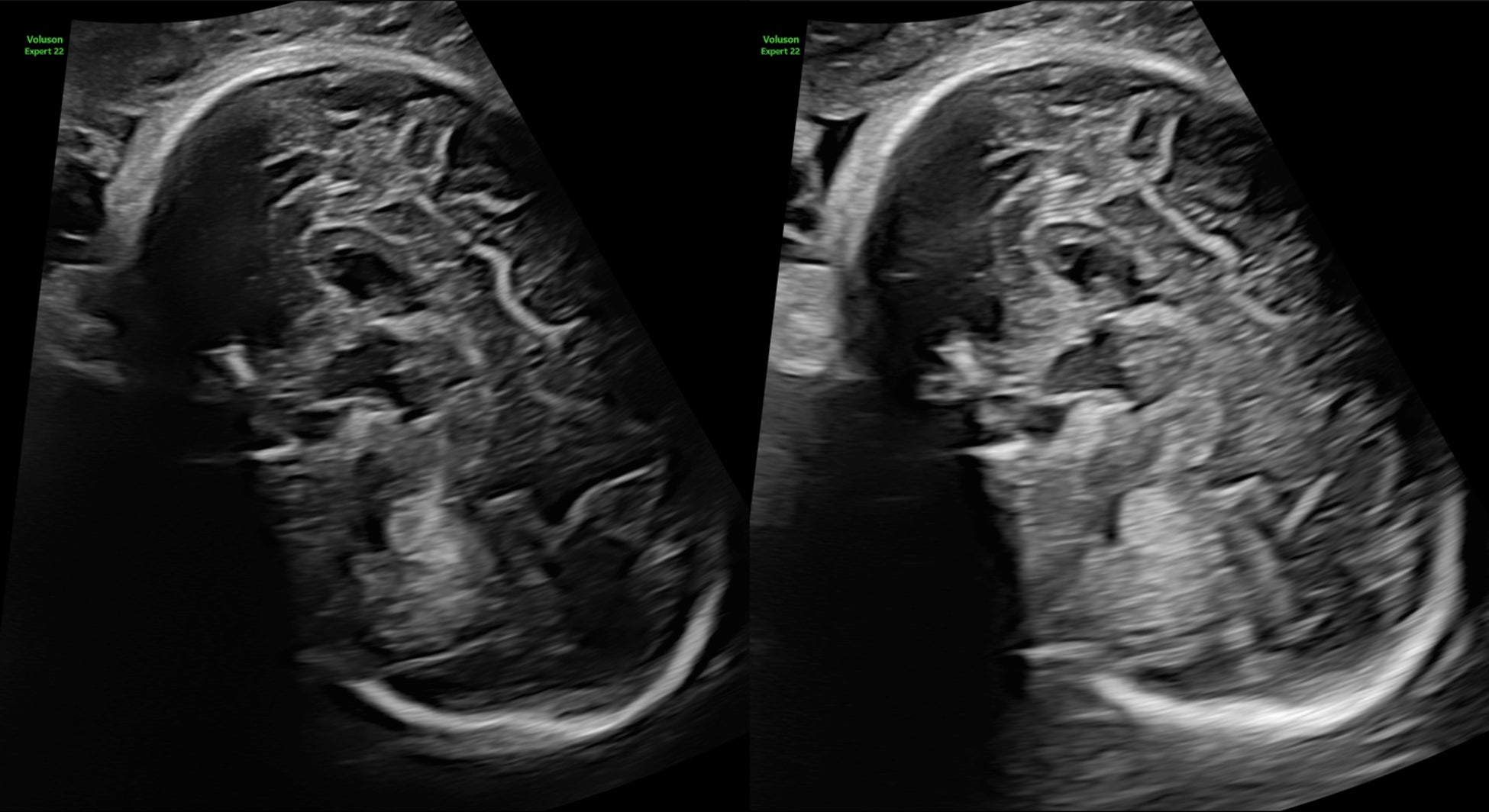 Voluson Expert 22では、より膨大な情報を高速処理可能な次世代エンジンLyric Architectureを搭載したことで、ソフトウェア制御されたビームフォーミングを実現。ハードウェア制御の限界を超え、格段に向上したペネトレーション、分解能、フレームレートを提供します。また、従来のVoluson製品では活用できなかった、新たなレベルの画像処理が可能となり、分解能に特化したイメージングモードから、深部感度に特化したイメージングモードまで、観察条件に大きく左右されることのない、明瞭な画像を提供します。