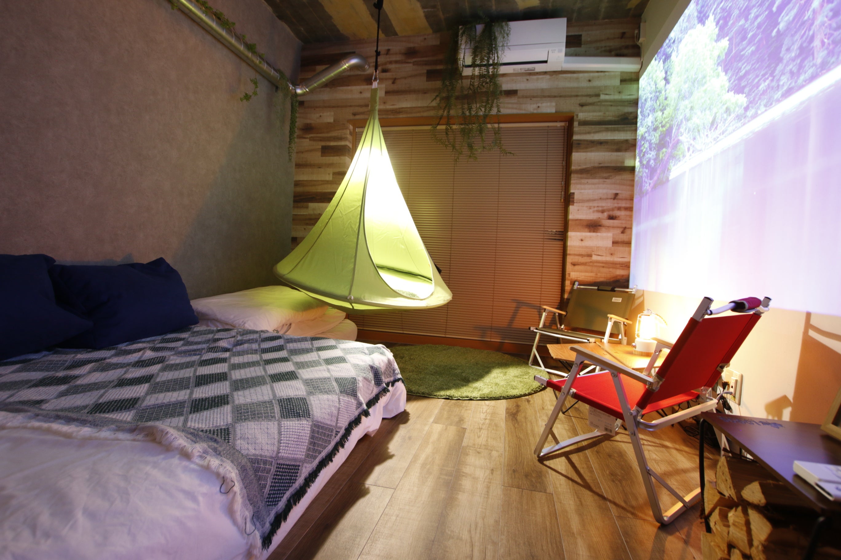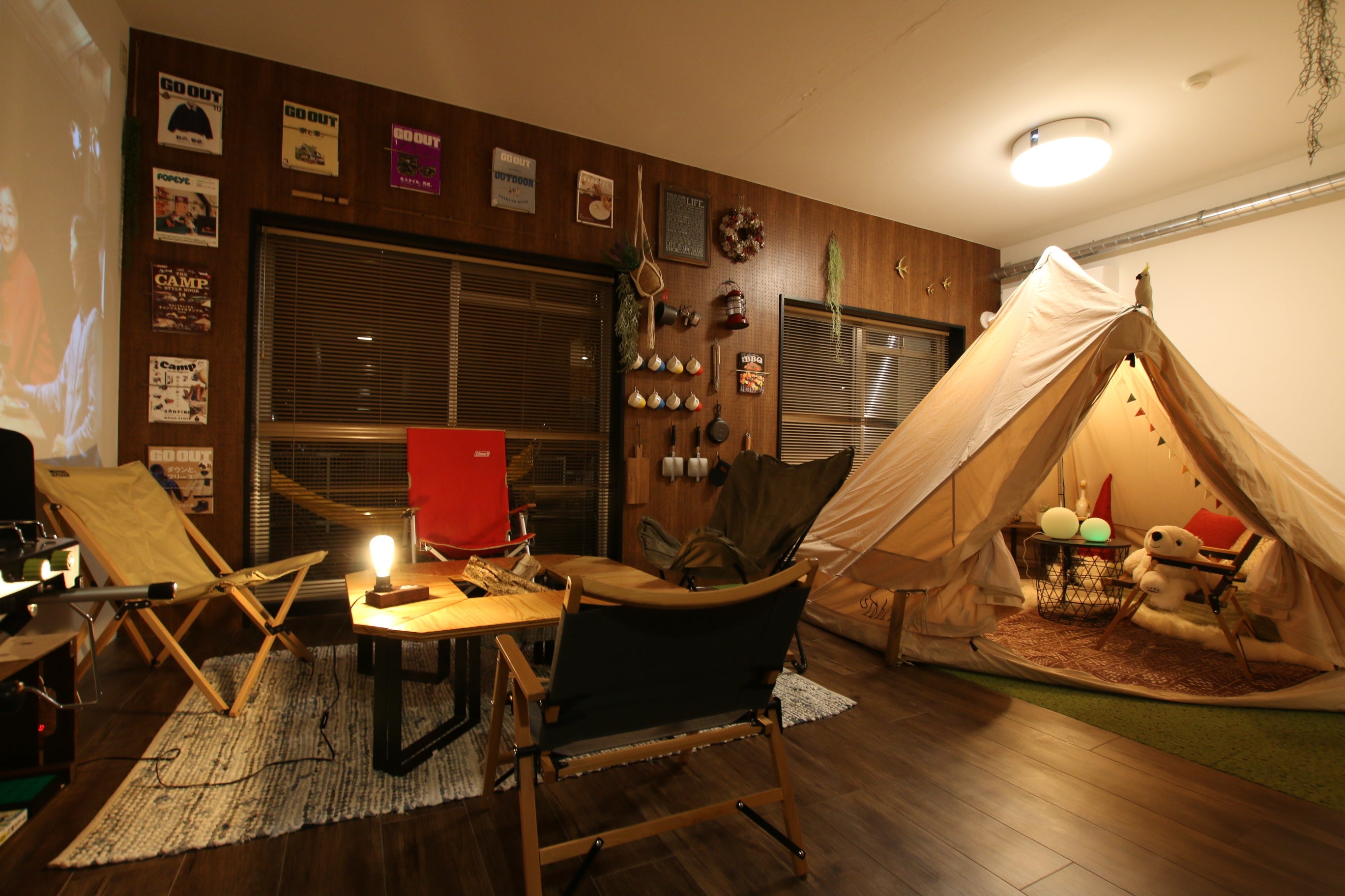 夏でも冬でもオールシーズン気軽にキャンプ気分が楽しめる屋内型キャンプ場をコンセプトにデザインされたお部屋です。