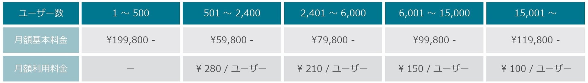500ユーザーまでは基本料金のみで利用できます。