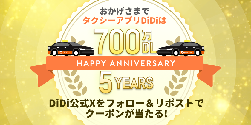 期間中、DiDiの公式X(旧Twitter)アカウント(@DidiJapan)をフォローし、対象のキャンペーン投稿をリポストした方の中から抽選で10名様に、「DiDi」アプリ上でご利用いただける1万円分のタクシークーポンが当たります。