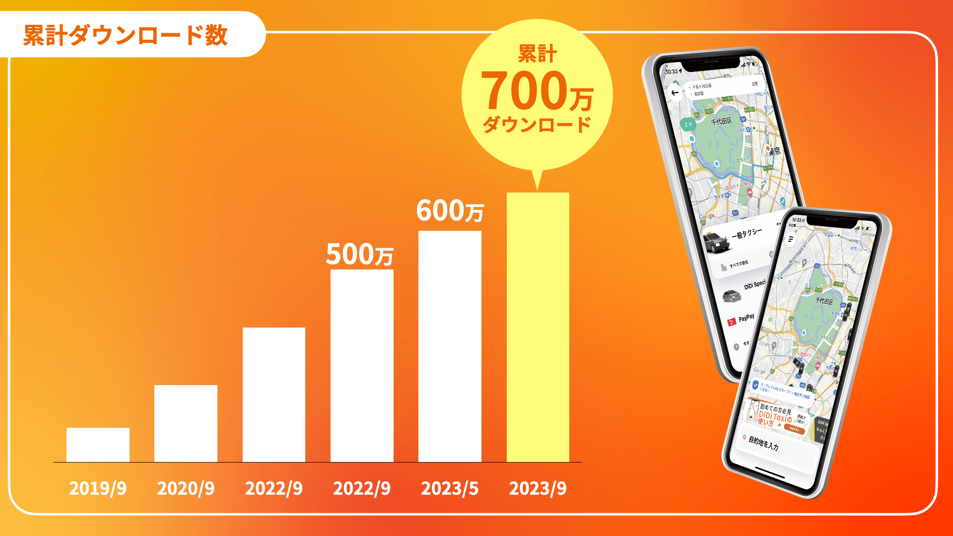2023年5月に600万ダウンロードを突破してから、約4ヶ月のスピードで到達しました。さらに、日頃からご利用いただいているお客様とタクシー事業者の皆様に支えられ、2023年9月にサービス開始5周年を迎えることができました。