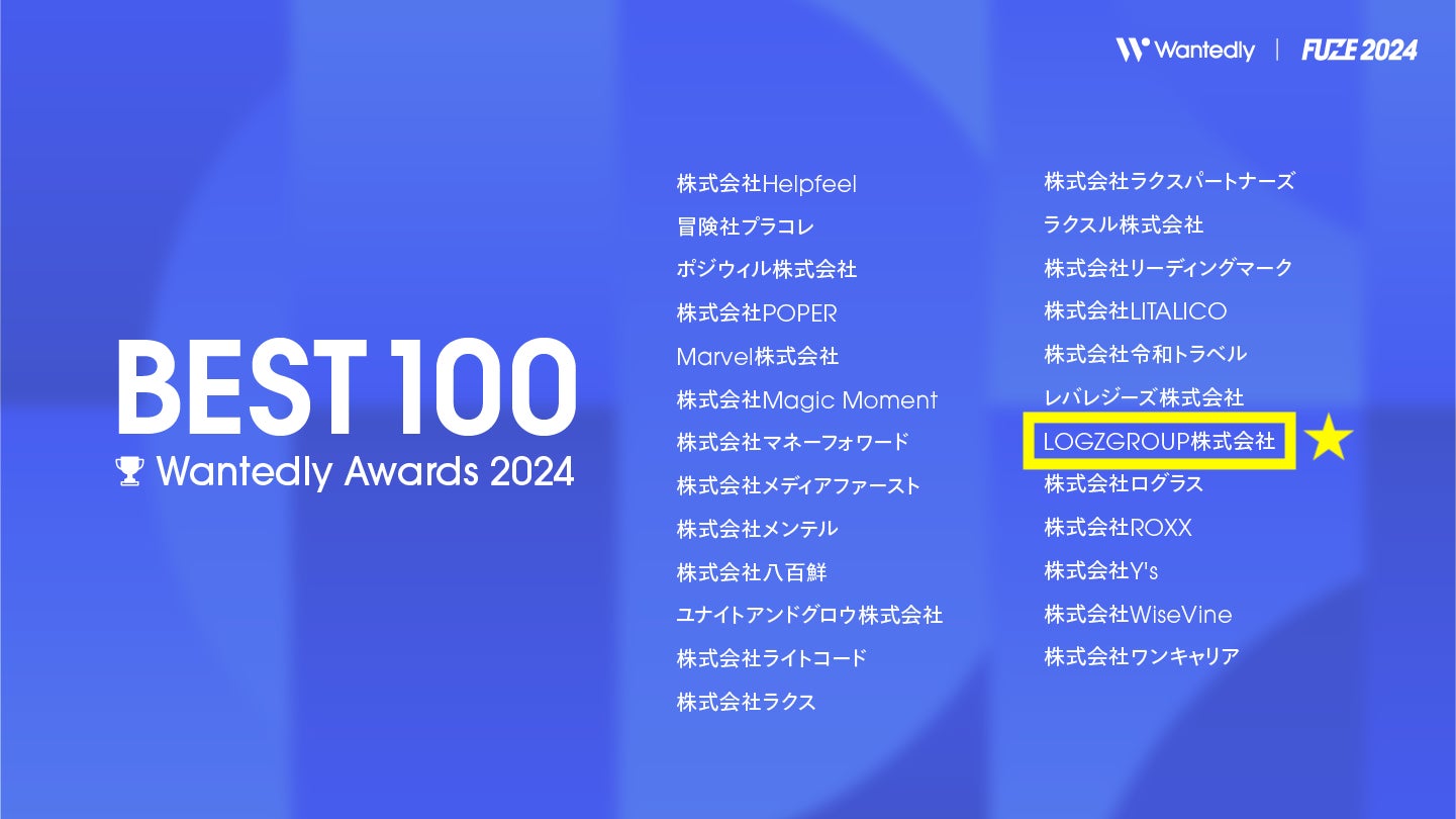 LOGZGROUP株式会社が3年連続Wantedly Awards 2024 BEST100に選出されました。