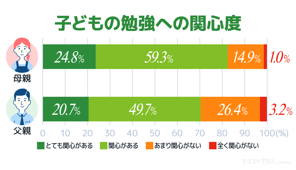 ■子どもの勉強…母親は8割、父親も7割が「関心がある」と回答