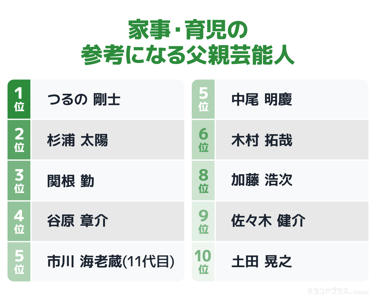 まずは、「家事・育児の参考になる父親芸能人」ランキングです。
