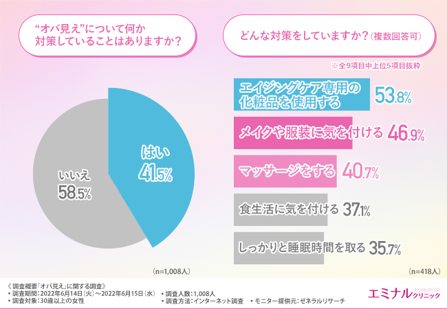 そこで今回、医療ハイフを手掛けるエミナルクリニック(https://eminal-clinic.jp/hifu/?refmedia=41073)は、30歳以上の女性を対象に、「オバ見え」に関する調査を実施しました。