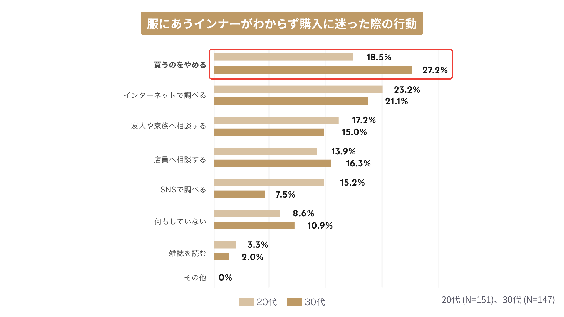 このことから、服を購入する際にあわせるインナーに迷うと、購入自体を諦めてしまう人が多くいることがわかりました。