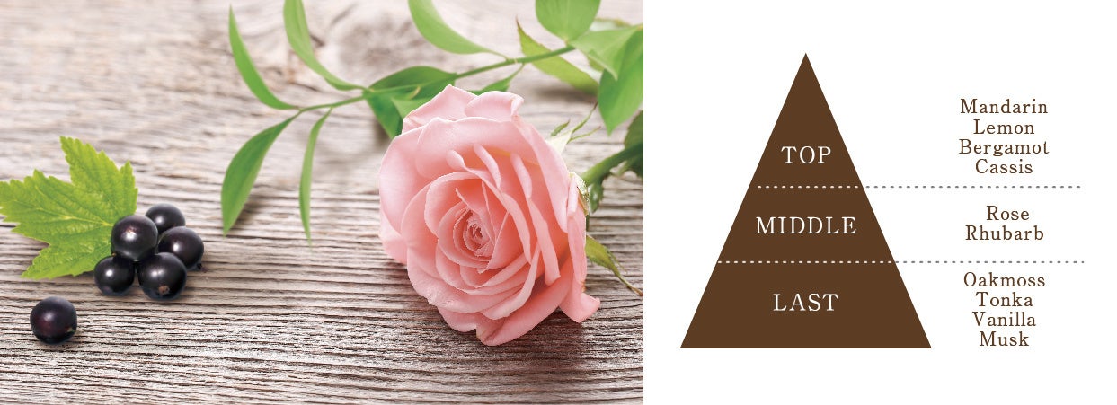 青葉のようなフレッシュグリーンの香りが産まれ持った才能と資質を呼び覚まし、思考をクリアにしてゆく。柔らかな甘みを持つトンカとローズの美意識に満たされる。