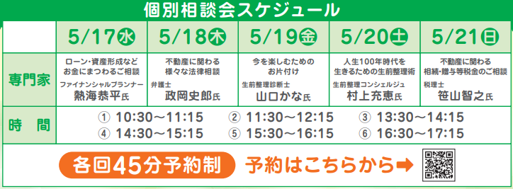 弁護士・税理士・ファイナンシャルプランナー・生前整理診断士・生前整理コンシェルジュによる個別相談会を開催します。事前予約制となりますので、参加希望の方は下記URLよりお申込みください。