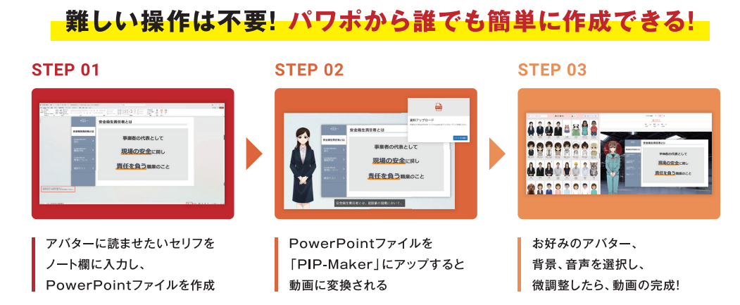 PIP-Makerは、PowerPoint資料をもとにアバターが自動でナレーションを行う動画を作成できるクラウドサービスです。