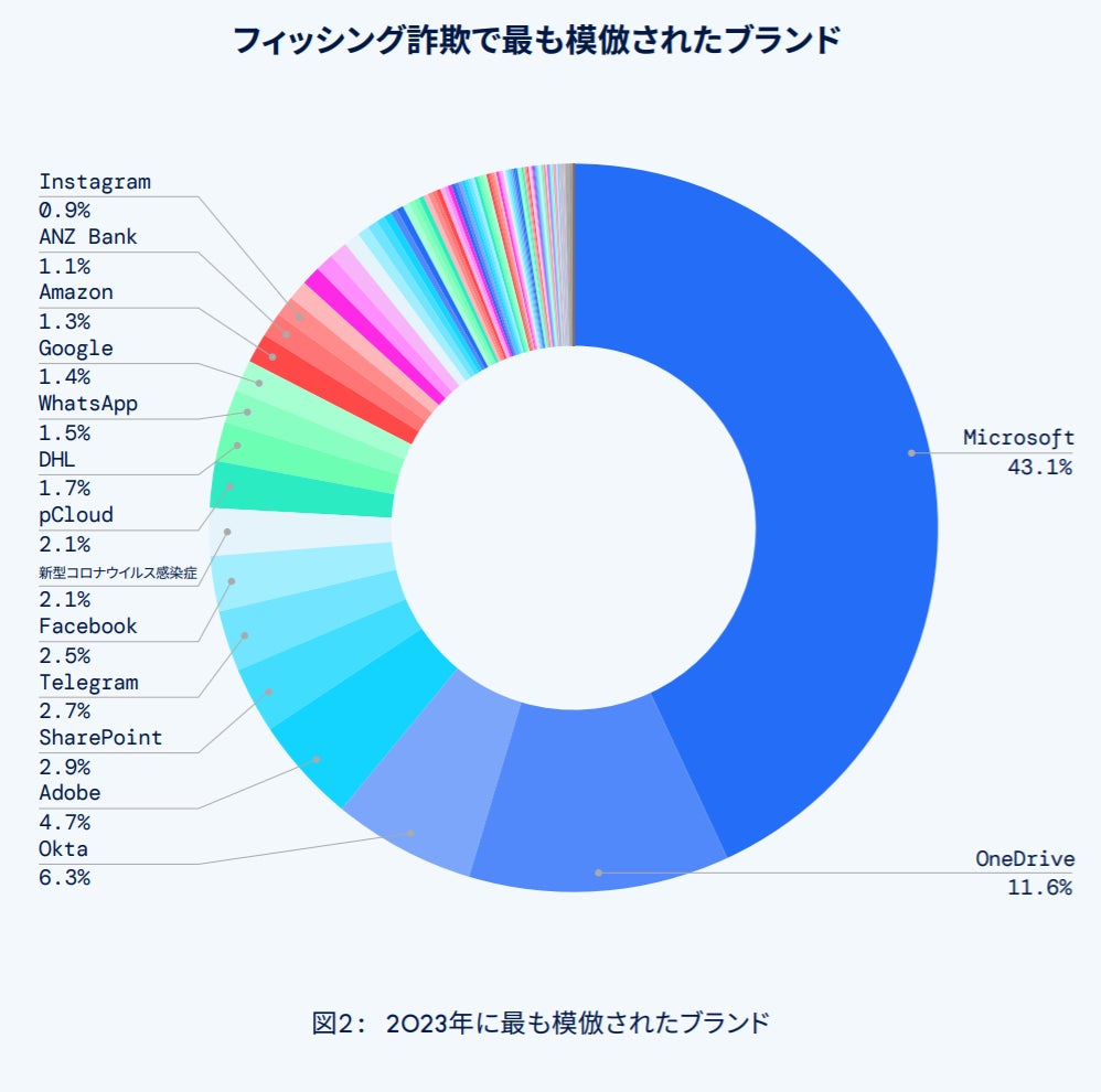 最も模倣されたブランドは依然としてMicrosoftで、フィッシング攻撃の43.1%を占める結果に