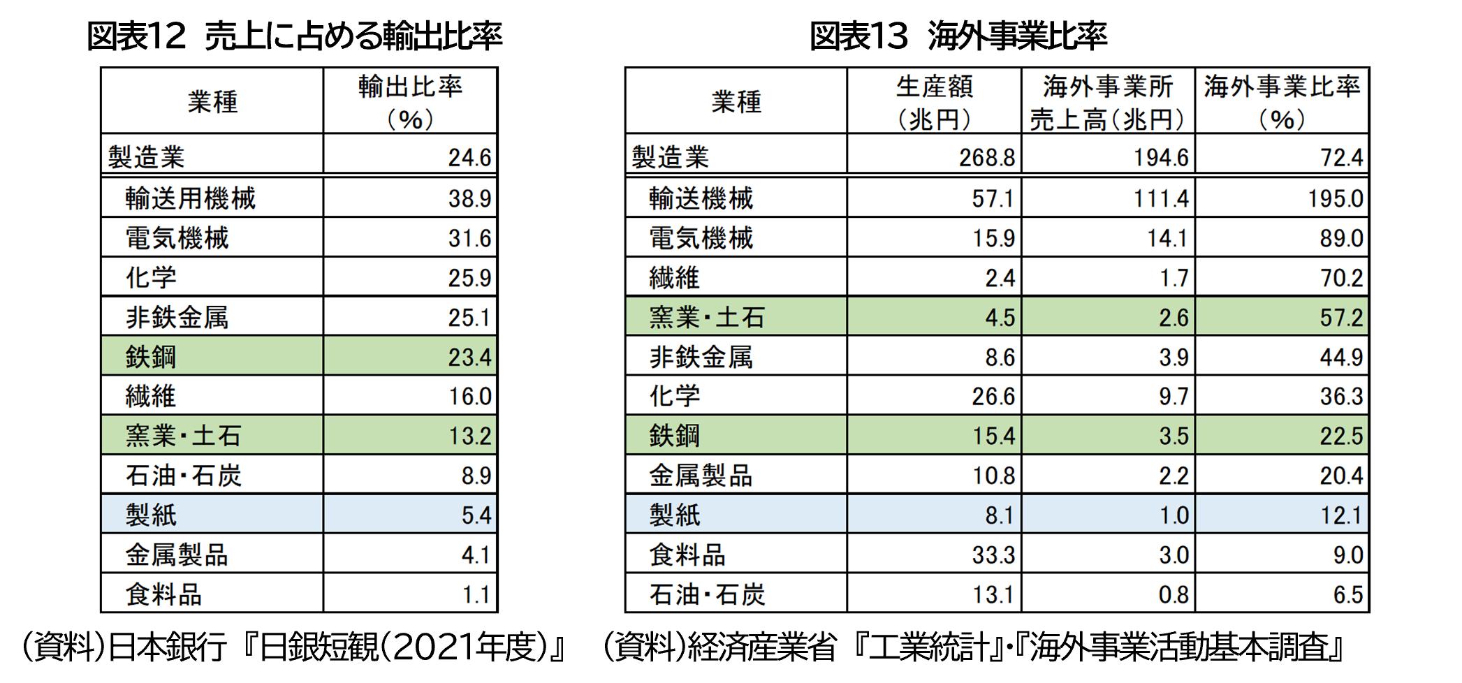 その結果、国内製紙業は、①生産コストに占めるエネルギーの割合が高いことが収益を圧迫し、②国内では価格転嫁が進まないこと、③更には輸出や海外事業の比率が低いために足元の円安のメリットが得られず、むしろ円安がコスト増加要因になっていることから、製造業種の中では非常に厳しい収益環境に置かれていることが分かった。