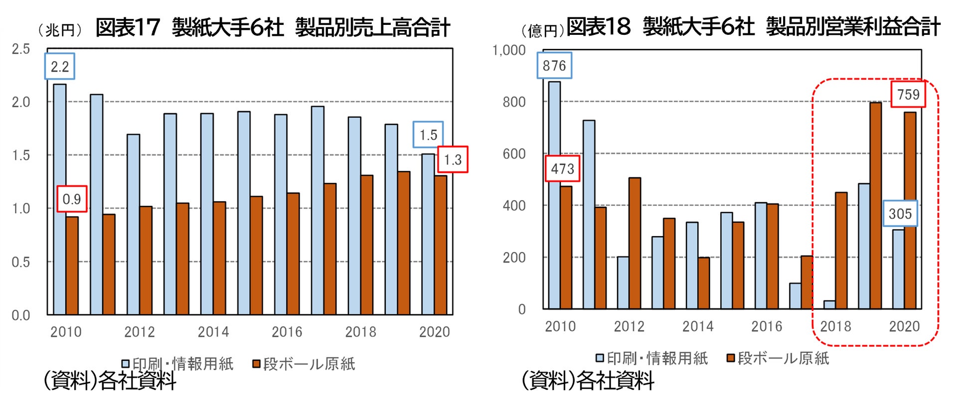 [1] 売上高1,000億円以上の上場企業として王子ホールディングス㈱、日本製紙㈱、大王製紙㈱、レンゴー㈱、北越コーポレーション㈱、三菱製紙㈱の6社を採用した。