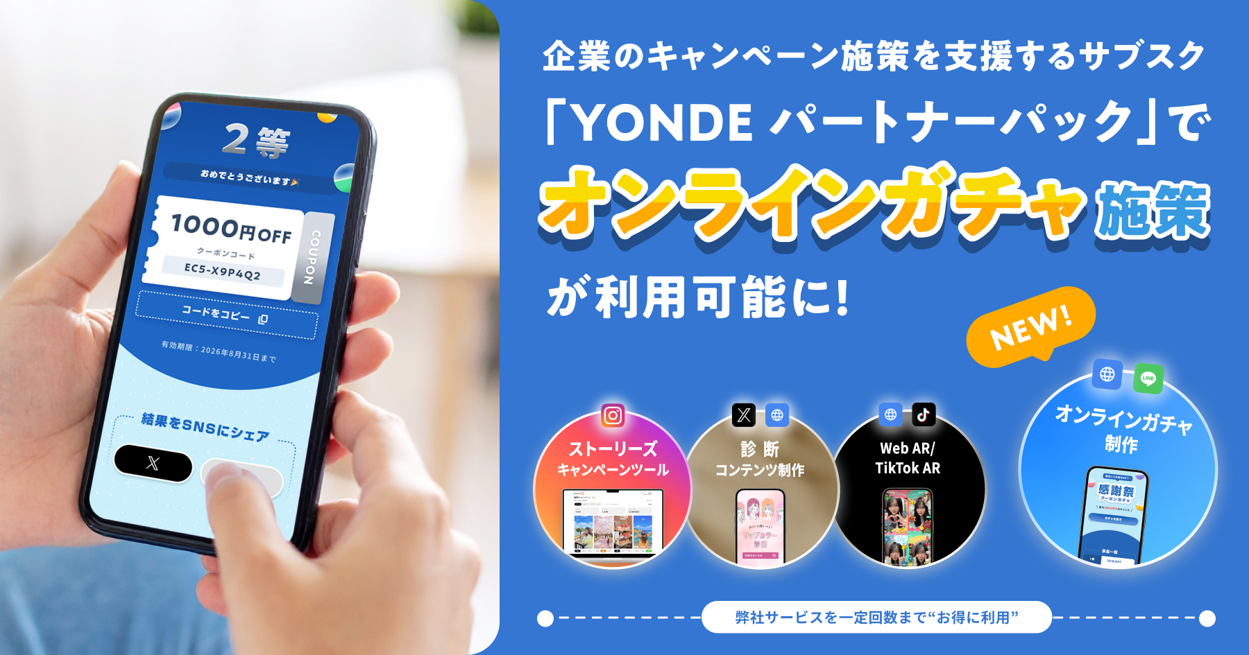 【オンラインガチャ施策が利用可能に】企業のキャンペーン施策を支援するサブスク「YONDE パートナーパック」