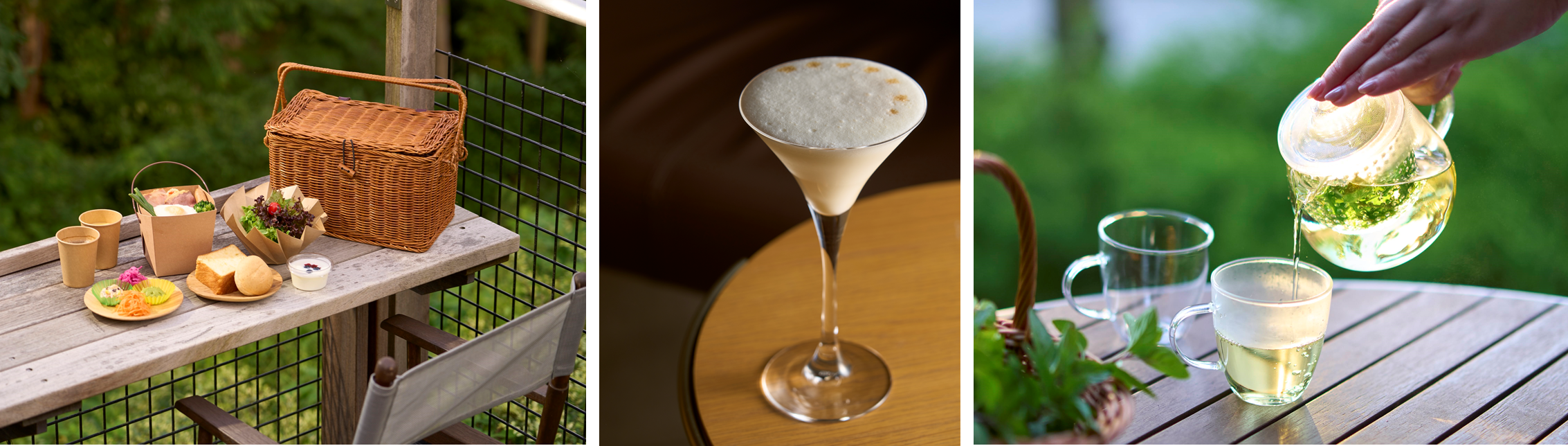 そのほか、「グランヴォー スパ ヴィレッジ」内にあるBARもみじで提供する「発酵スムージー」や、グランピングエリアにある自家栽培のハーブナーセリーから整腸作用のあるカモミールやオレガノを摘み取って楽しむハーブティなど、腸に優しいお食事を追求したプログラムとなっています。
