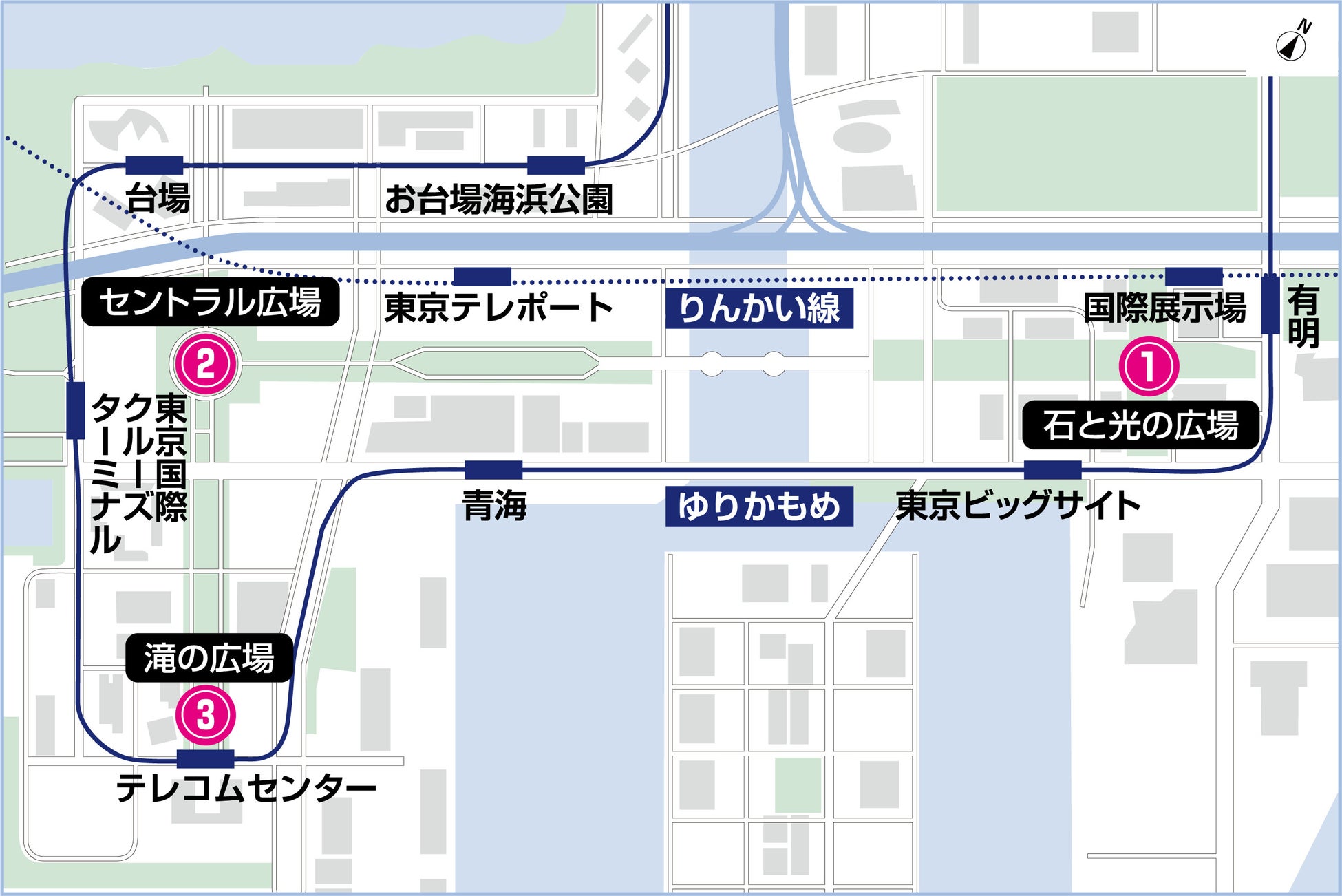 りんかい線「国際展示場」駅・ゆりかもめ「有明」駅から東京ビッグサイト方面 徒歩3分