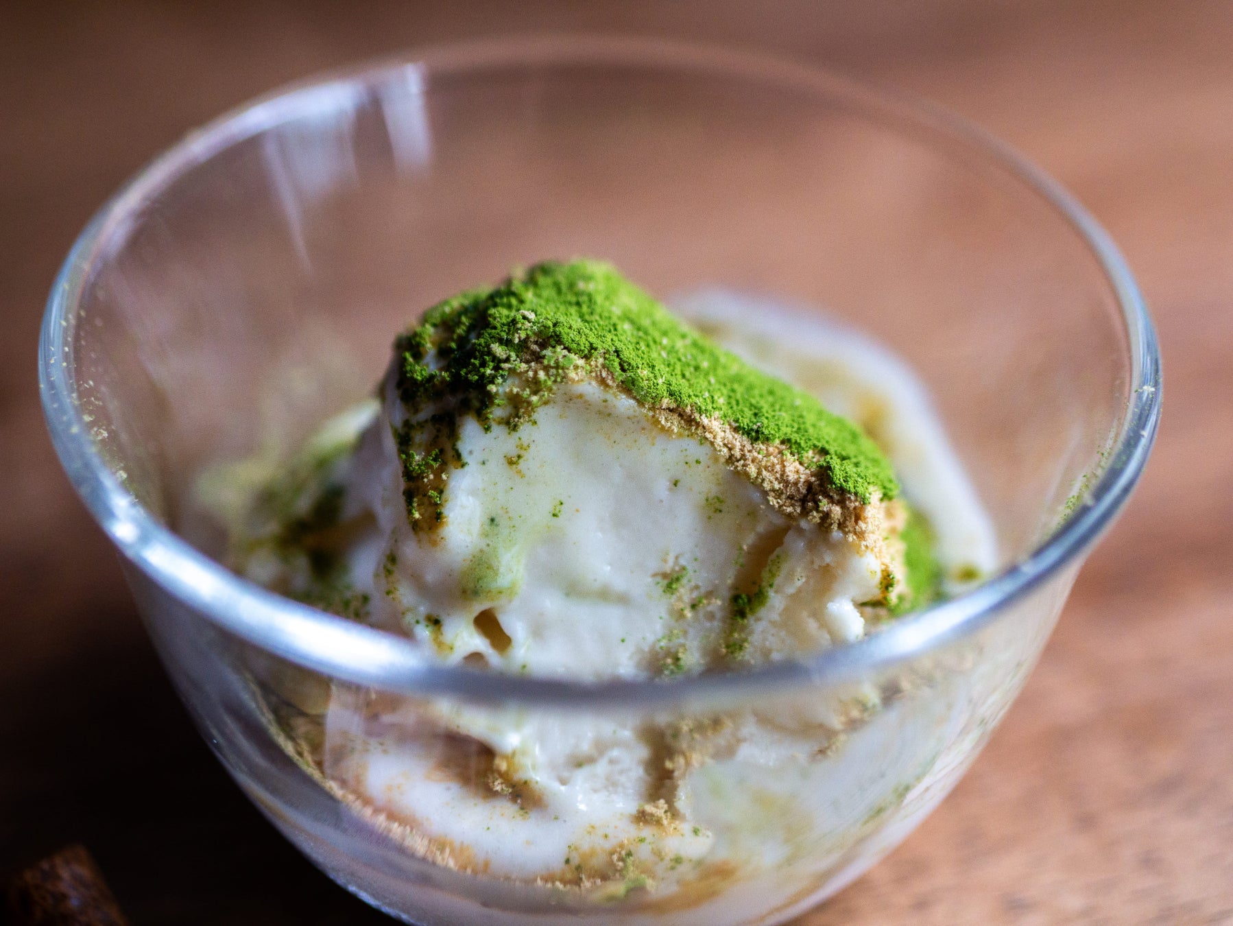 有機豆乳、メープルシロップを使用したクリーミーなアイスに、香り豊かな京都の宇治抹茶ときな粉をまぶした和を感じられるヴィーガンアイス。