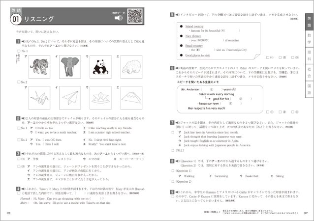 高校入試で出題される英語、数学、理科、社会、国語の5教科すべてを1冊にまとめた入試対策問題集です。全国の公立高校入試過去問から本当によく出る問題だけをセレクトし、入試前の忙しい時期でも1冊全部解ききることができる分量にまとめました。入試直前期に短期間で得点アップを狙う人におすすめです。