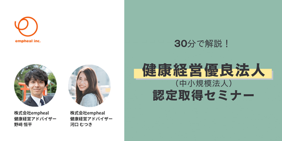 【健康経営・無料オンラインセミナー】30分でわかる!健康経営優良法人認定制度の各論[総論/評価・改善/医療・健康相談窓口/女性の健康]セミナー